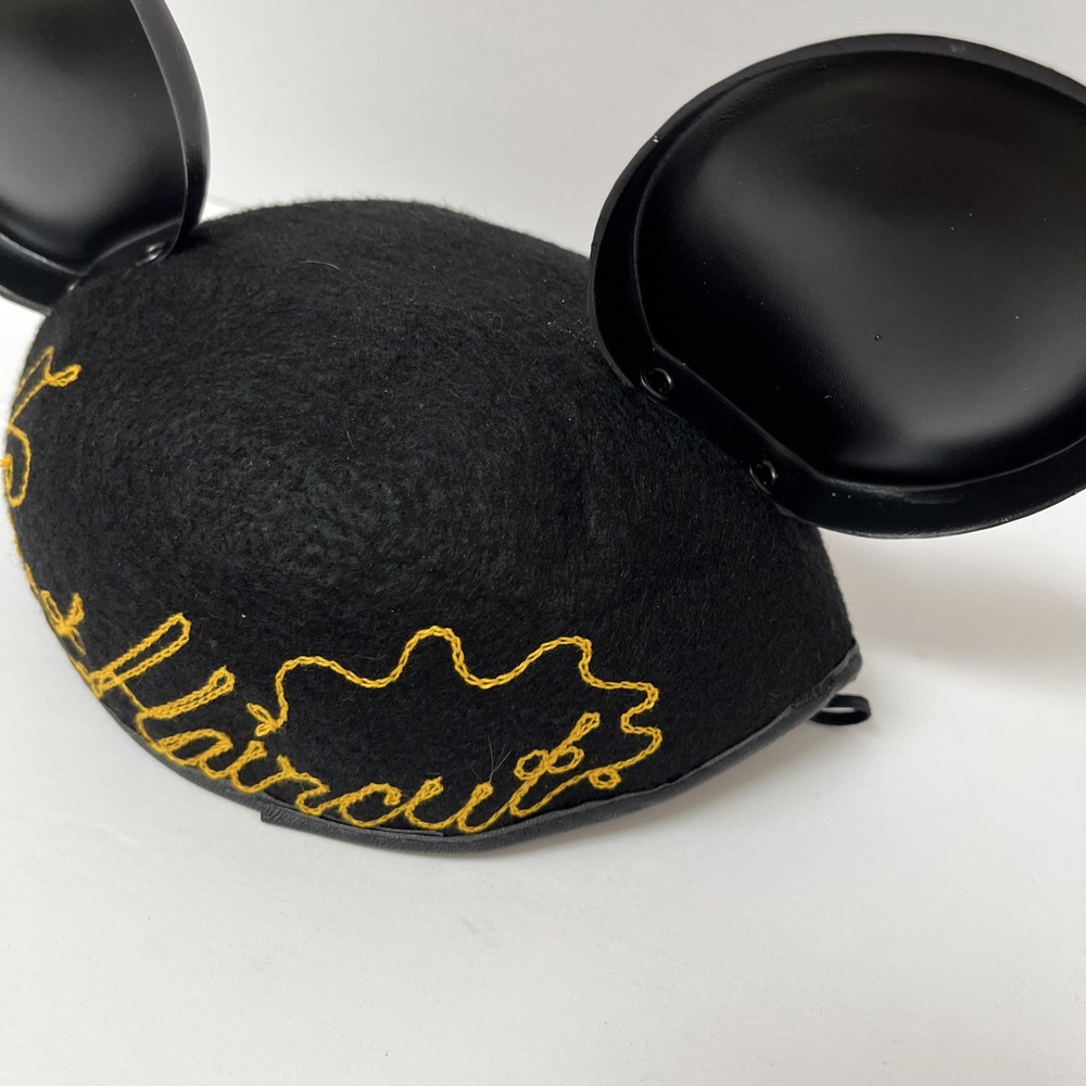 Disney World Mickey Mouse Ears Hat - Infant Size with “First Haircut” embroidered on the back. Has elastic string chin strap.