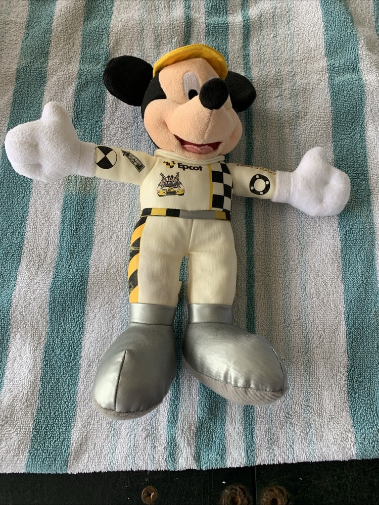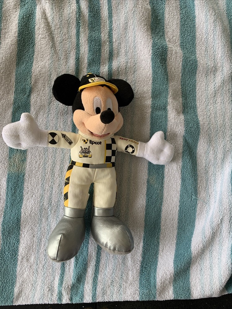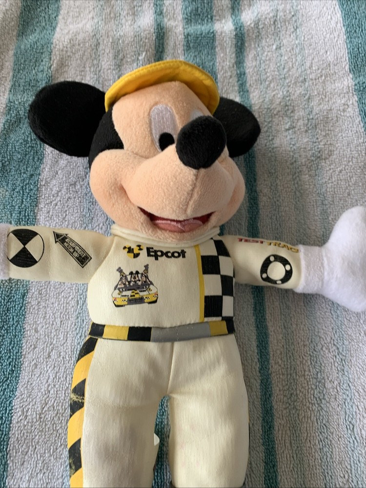 Disney World Mickey Mouse Epcot Test Track Dummy Plush Beanie Stuffed Doll 12” Like New Condition