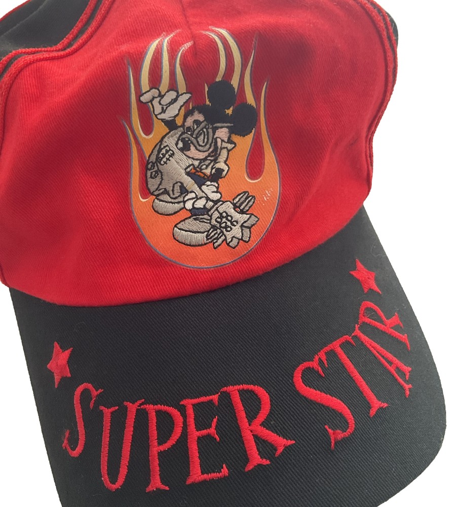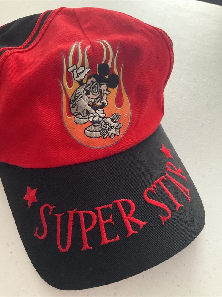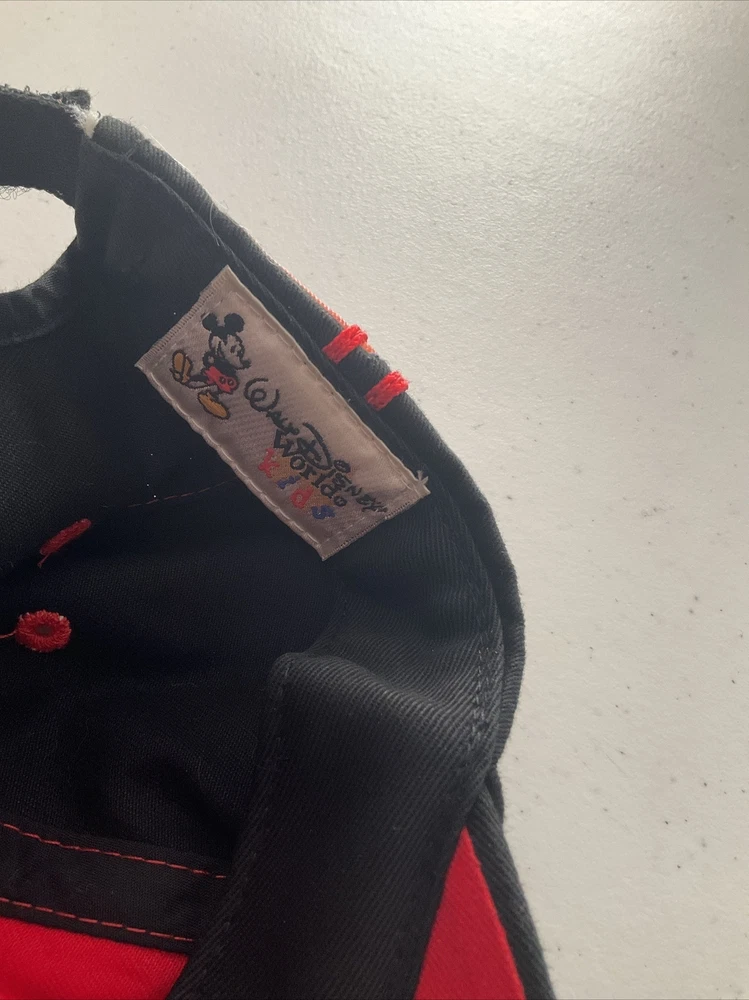 Clean from a smoke free home Get ready to rock and roll with this cool Disney World Mickey Mouse Hat Cap. The adjustable cap is made of 100% cotton and features a red and black color scheme. It is designed for children and has an age range suitable for youth. The hat is perfect for fans of the beloved Mickey Mouse character and the Disney franchise. This hat is from Walt Disney World and is an official Disney product. It is a contemporary item, manufactured in the Philippines and suitable for children. The hat has a cool guitar design that makes it a standout accessory. Wear it to complete your Mickey Mouse collection or as a fun addition to your everyday outfit.