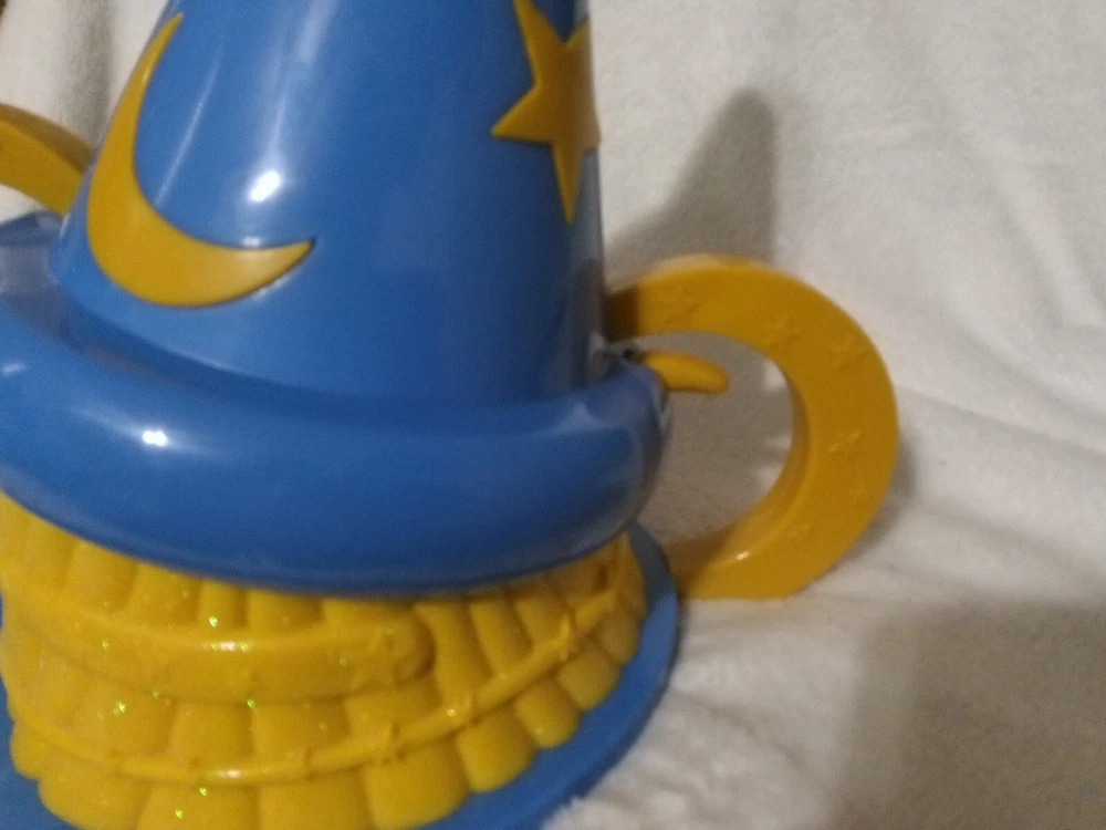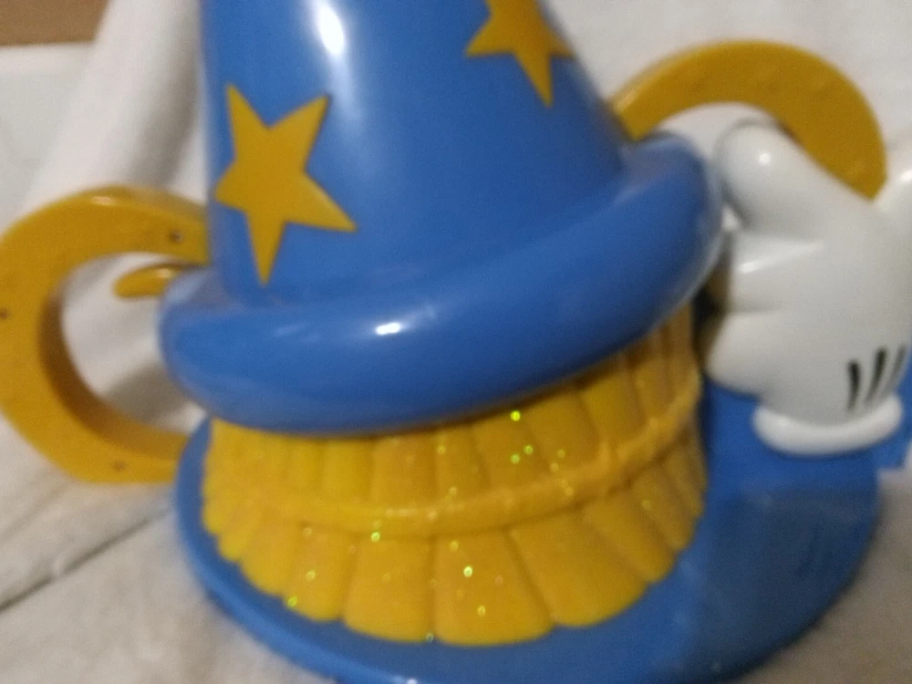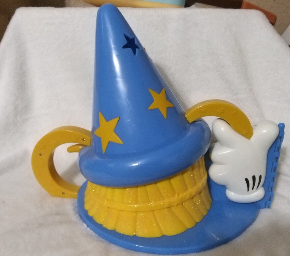 Enhance your Disney World collection with this vintage sorcerer's hat playset. The hat is a perfect addition to any theme park souvenir collection. This playset is from the Walt Disney World Theme Park Collection and showcases the Sorcerer's Hat Adventure Playset. It is a great opportunity to own this retired collectible as it is a Featured Refinement of Disneyana. The playset was manufactured in China and is a Franchise of Disney. The Contemporary (1968-Now) Time Period Manufactured is a unique aspect that makes this item a valuable part of the collection. The hat is the only item in this listing and has no modifications. The brand of the hat is Disney.