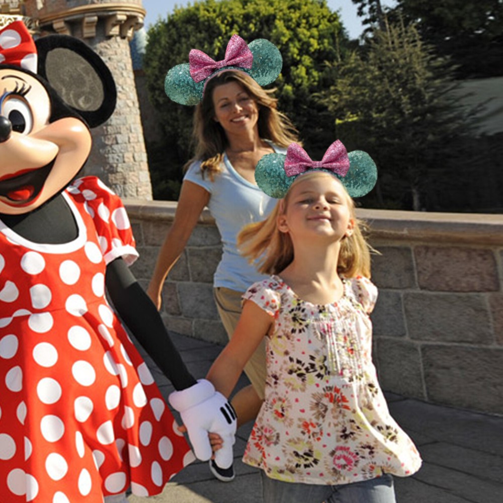 Disney Parks Teal Sequin Minnie Mouse Ears Headband with Pink Bow