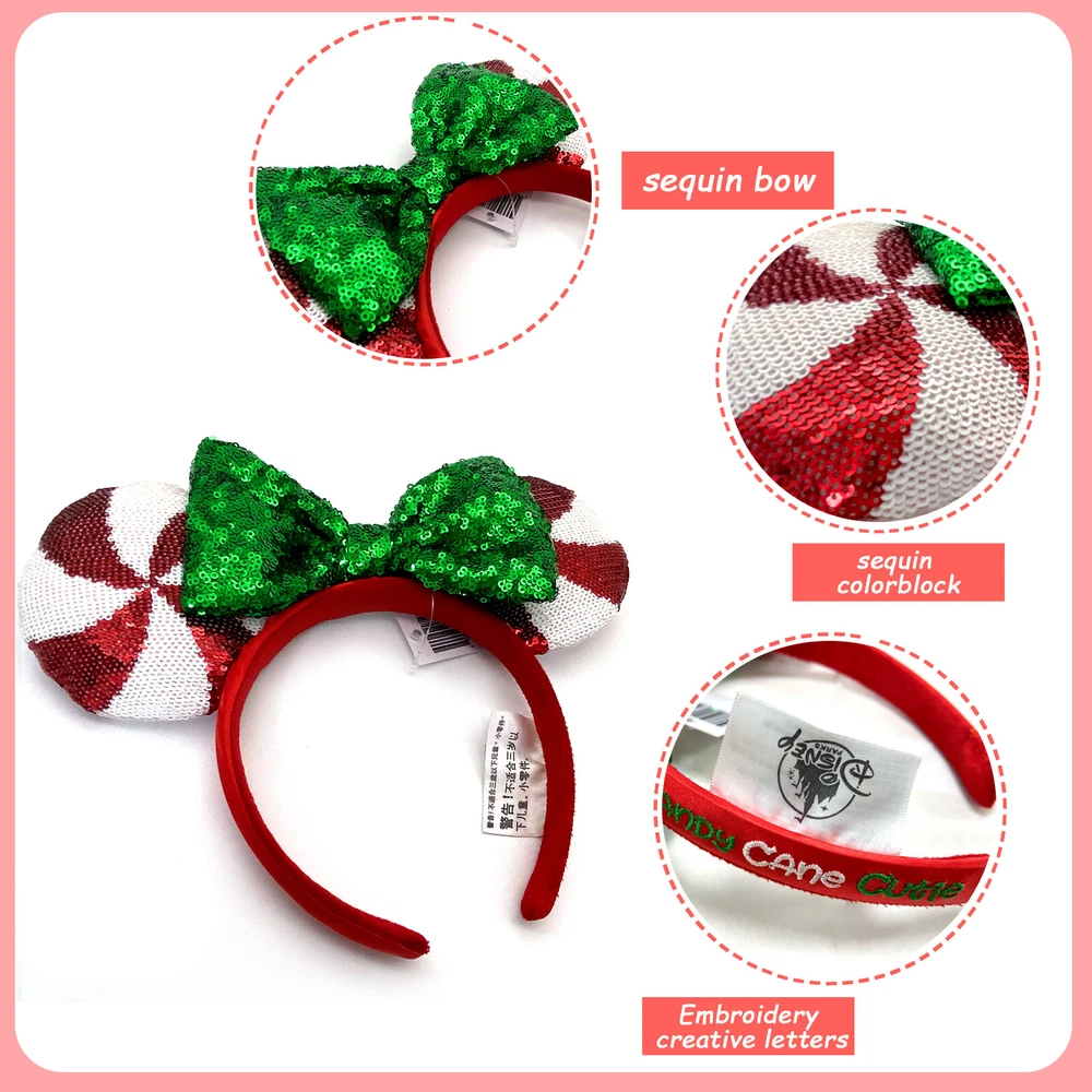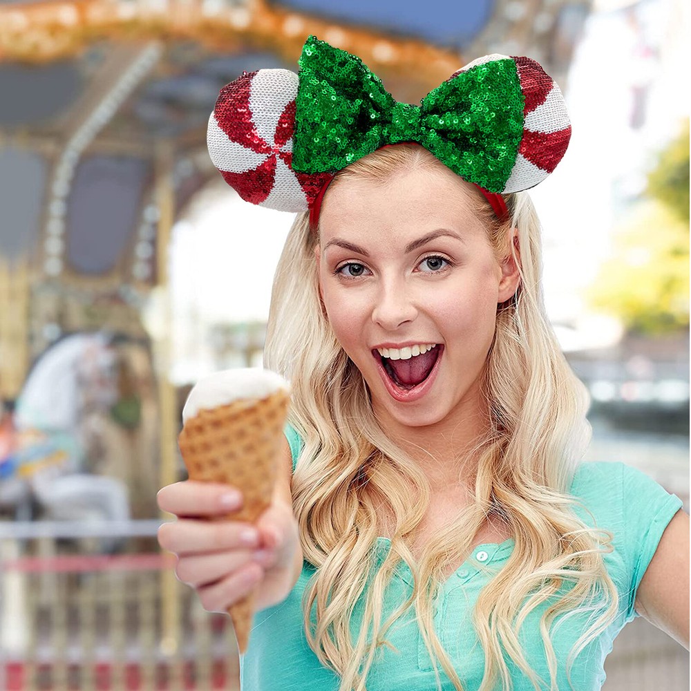 This adorable Minnie headband is perfect for adding festive Disney magic to any holiday outfit! The sequins sparkle beautifully, and the candy cane stripes are so cheerful. It fits comfortably on kids and adults, making it a fun accessory for the whole family. The quality is fantastic, just like something you'd find at the parks. Definitely a must-have for Disney fans during Christmas!