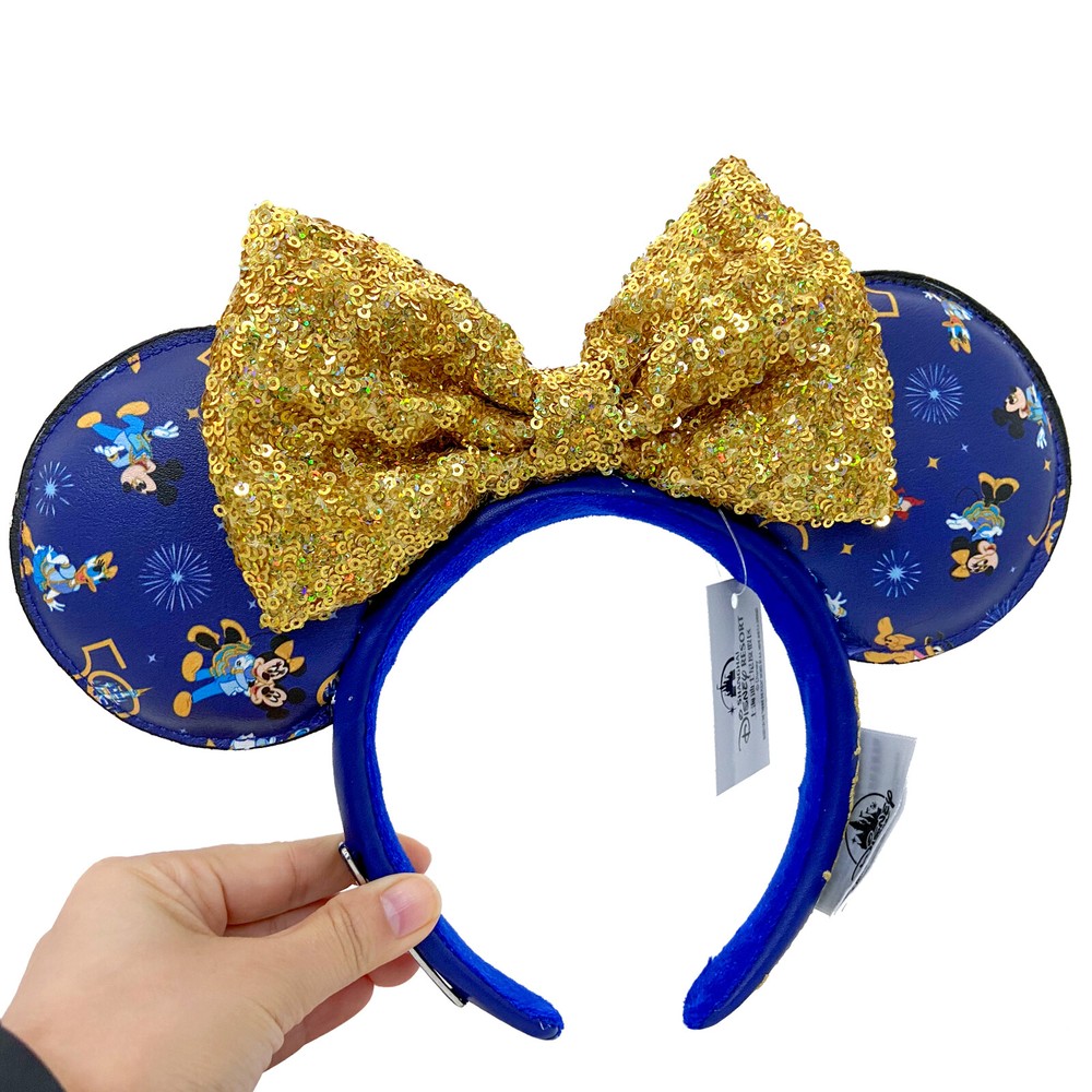 Disney Parks Blue Gold Sequins Bow Minnie Mouse Ears Headband for Adults Kids
