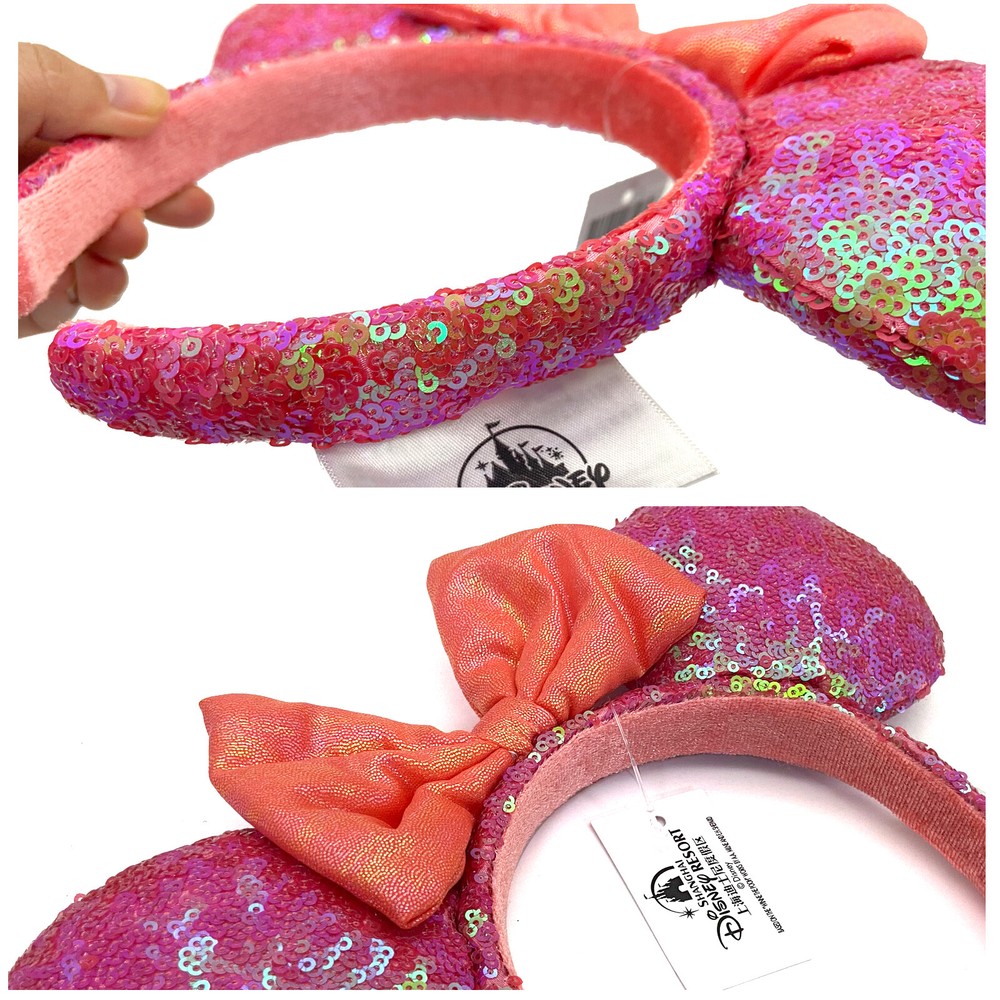 Disney Parks Red Orange Sequin Minnie Mouse Ears Headband with Sparkle Accents