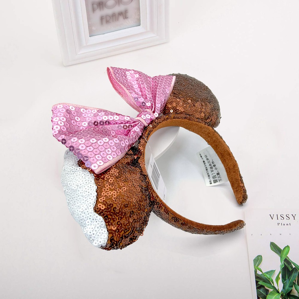 This adorable Minnie Ears headband is a must-have for Disney fans! The chocolate ice cream bar design is super cute and well-made, fitting both kids and adults comfortably. The color is vibrant, though slightly different in person due to lighting—still absolutely charming. Shipping was fast, and the seller was great with communication. Perfect for park visits or adding some Disney magic to your day!