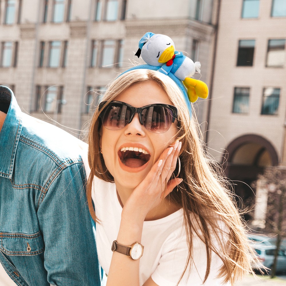 This adorable Donald Duck plush headband is so soft and well-made! The cute sleeping design with his little mouse ears is perfect for Disney fans of any age. It fits comfortably and stays in place, making it great for theme park visits or just fun at home. The quality feels just like something you'd buy at the parks! Super cute and definitely worth it.