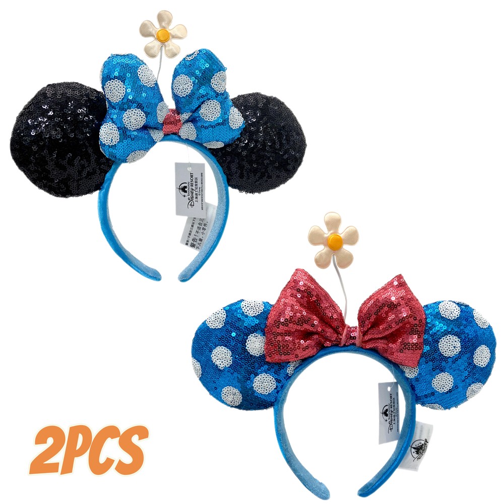 Disney-White Polka Dot Blue Bow Black Ears&Red Bow White Polka Dot Blue Headband