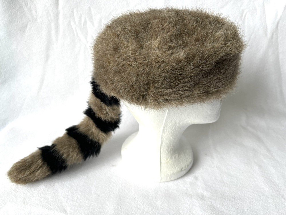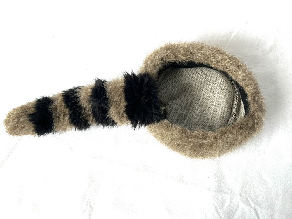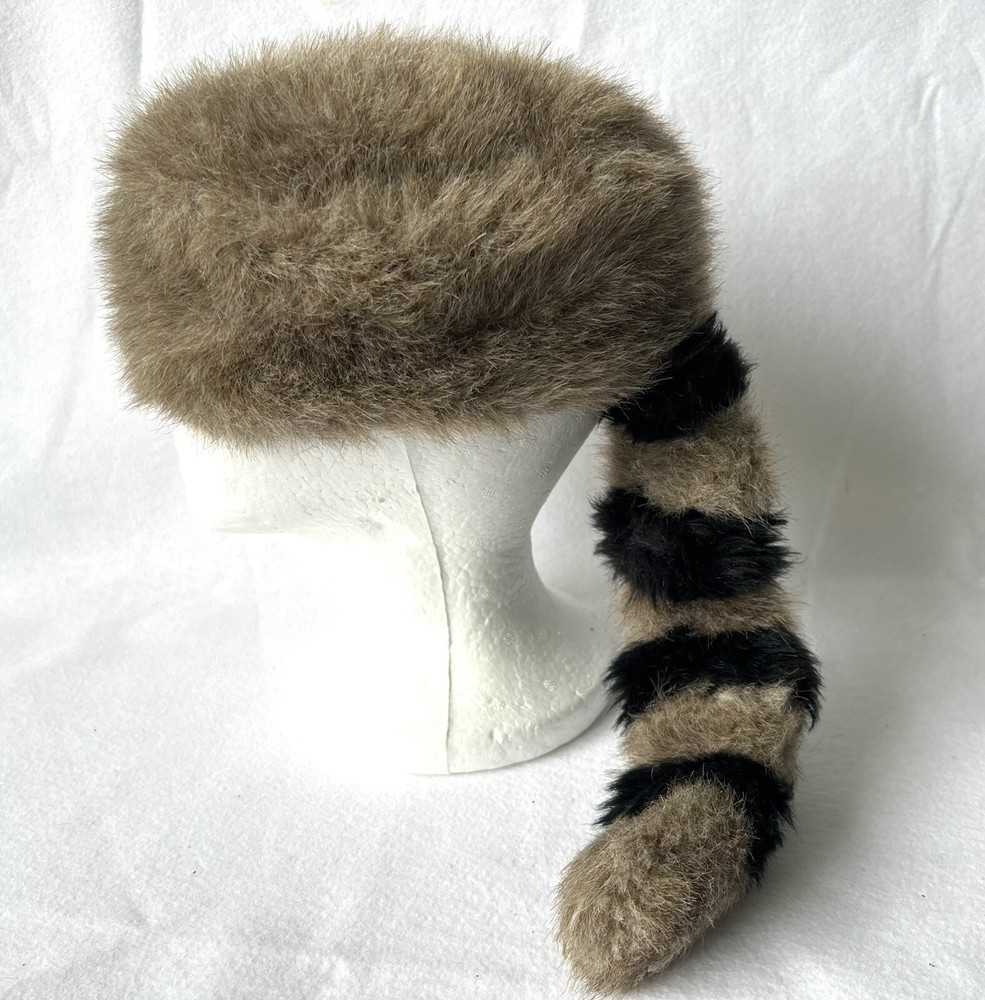 Disneyland Davey Crockett Boone Cap Faux Fur Tail Raccoon Hat Youth L/XL Excellent like new condition Fast shipping