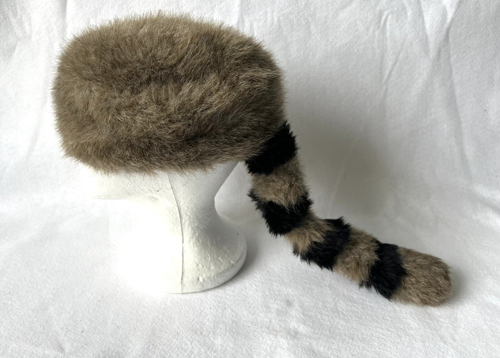 Disneyland Davey Crockett Boone Cap Faux Fur Tail Raccoon Hat Youth L/XL Excellent like new condition Fast shipping...