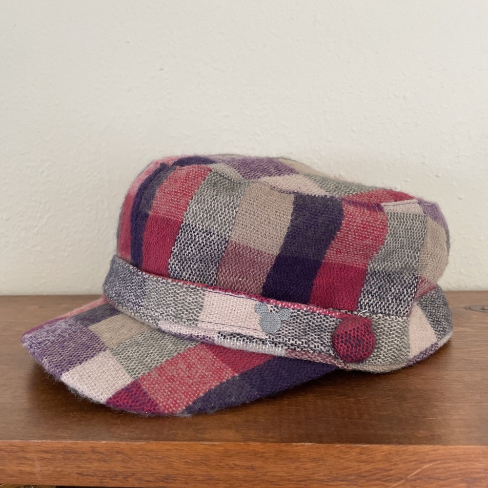 Newsboy style cap by Disneyland Resorts Plaid - magenta, pink, purple, gray Gray Mickey logo on side. Great condition. See all pics for your reference. Please ask questions before purchasing....