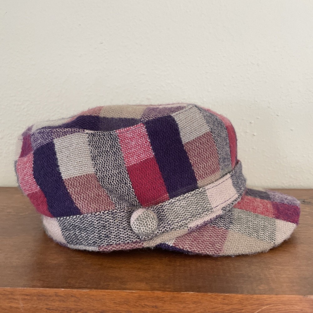 Newsboy style cap by Disneyland Resorts Plaid - magenta, pink, purple, gray Gray Mickey logo on side. Great condition. See all pics for your reference. Please ask questions before purchasing.