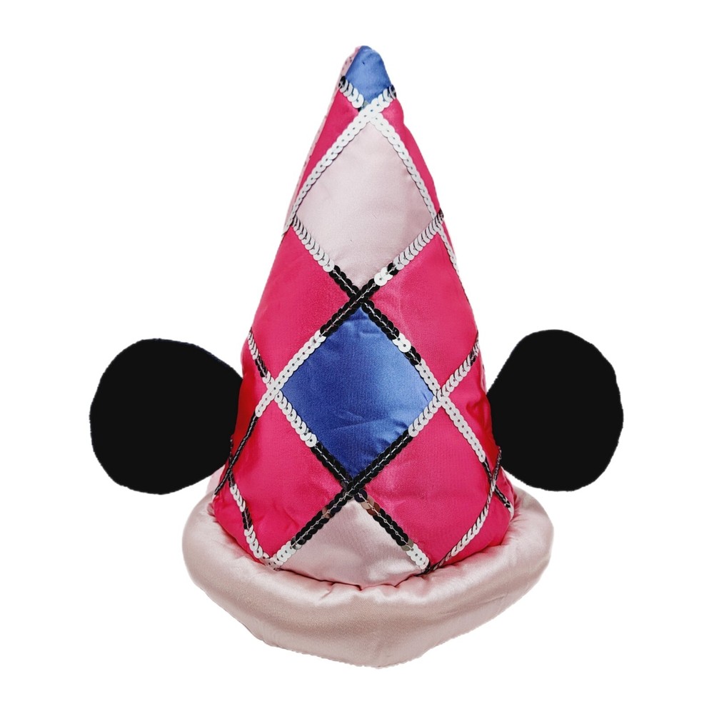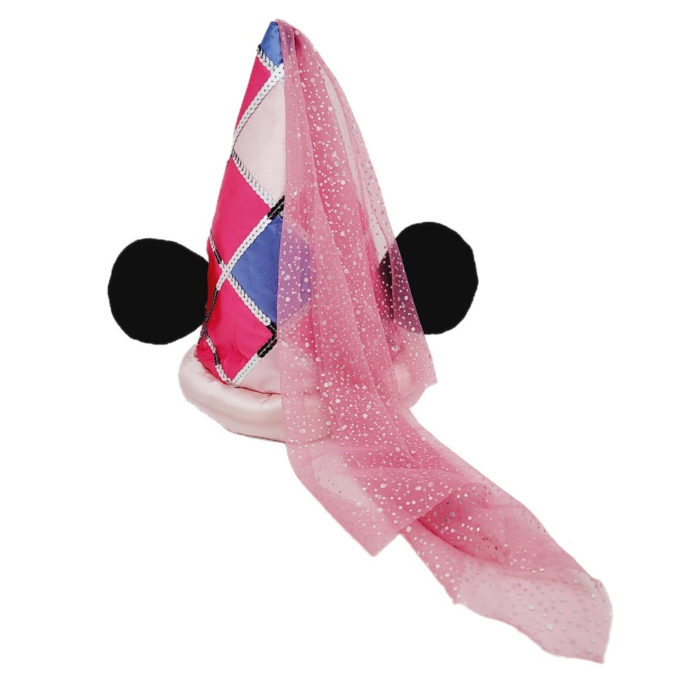 Disneyland Resorts Minnie Mouse Ears Hennin Princess Royal Veil Hat Walt Disney World • New without tag, unused, collected • Disneyland Resorts - Walt Disney World • 12" Cone shaped hat known as a Hennin w/veil accented with classic mouse ears • This kids satin headdress is accented with silver sequin detailing that creates a diamond pattern. It has purple, dark & light pink colors w/a silver dotted pink mesh veil. • Size: Youth (small kids 3-5yrs) • Hat 12" Tall • Hat has a small elastic chin strap w/tiny Velcro closure for stability
