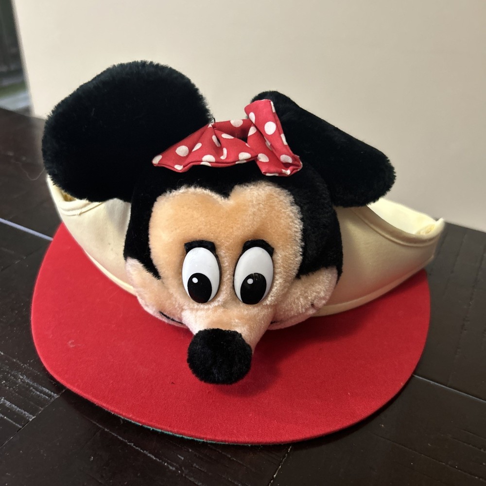 Channel your inner Disney fanatic with this adorable vintage Minnie Mouse plush head visor hat! The beige color complements any outfit, and the iconic Disney franchise makes it a must-have for any collector. Perfect for adults, this hat is a unique piece of Disneyana that will surely become a cherished addition to your collection. Whether you're a fan of contemporary Disney or vintage pieces, this hat is sure to delight.