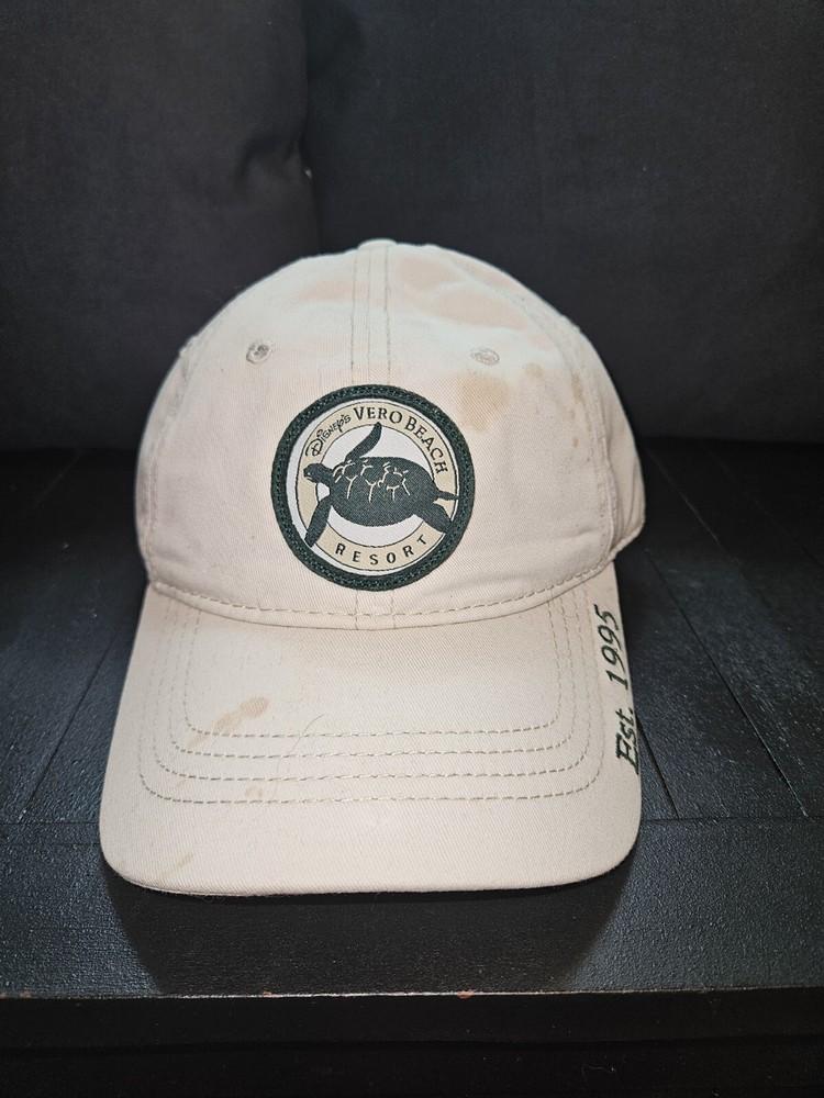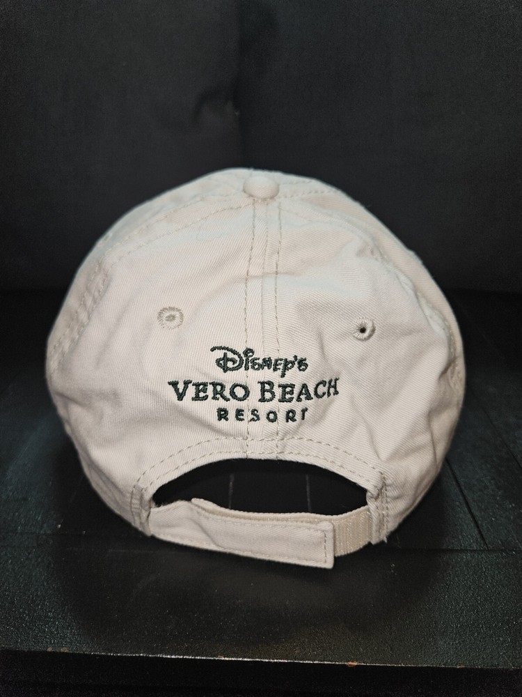Experience the magic of Disney with this vintage Walt Disney World men's baseball cap. The beige canvas material features embroidery and a patch with the Disney and Vero Beach characters, making it a perfect accessory for travel, casual wear, or business occasions. The adjustable cap is made of a polyester and cotton blend and is suitable for all seasons, especially summer and spring. This one-size-fits-all cap is a great addition to any Disney fan's collection. It is a perfect gift for any occasion and a great way to show your love for Disney. Get your hands on this unique vintage piece today! Some minor character stains on it. Probably will come out with quick clean. See pics for further description and condition. Make an offer and head to the beach.