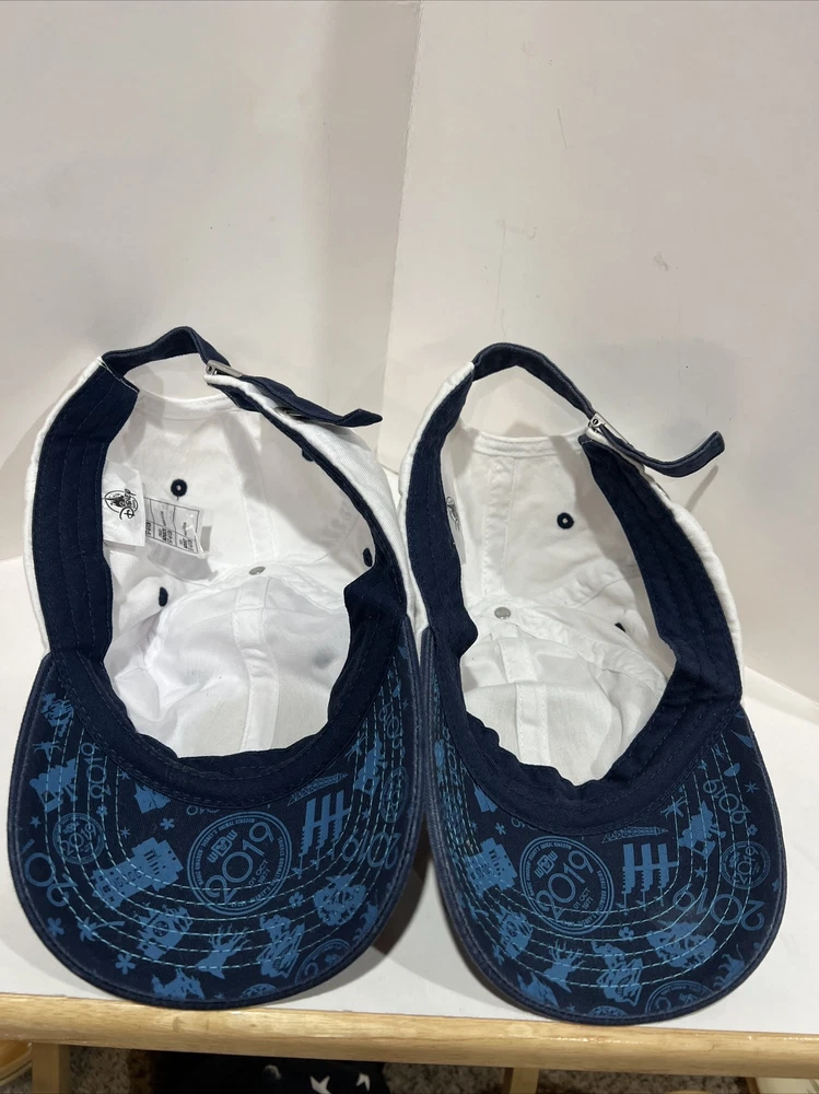 Nice hat. One size fits most. Hat has been cleaned and hang dried if listed as prepared unless listed as new without tags. Shipped with USPS First Class Package in a box. Both have small spot on each....