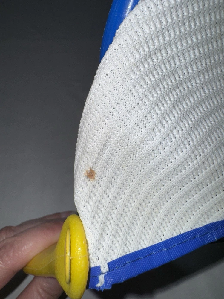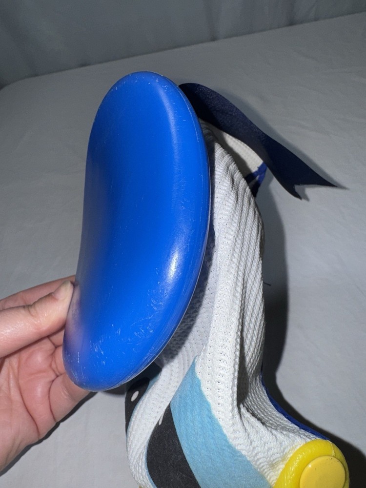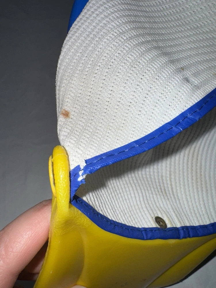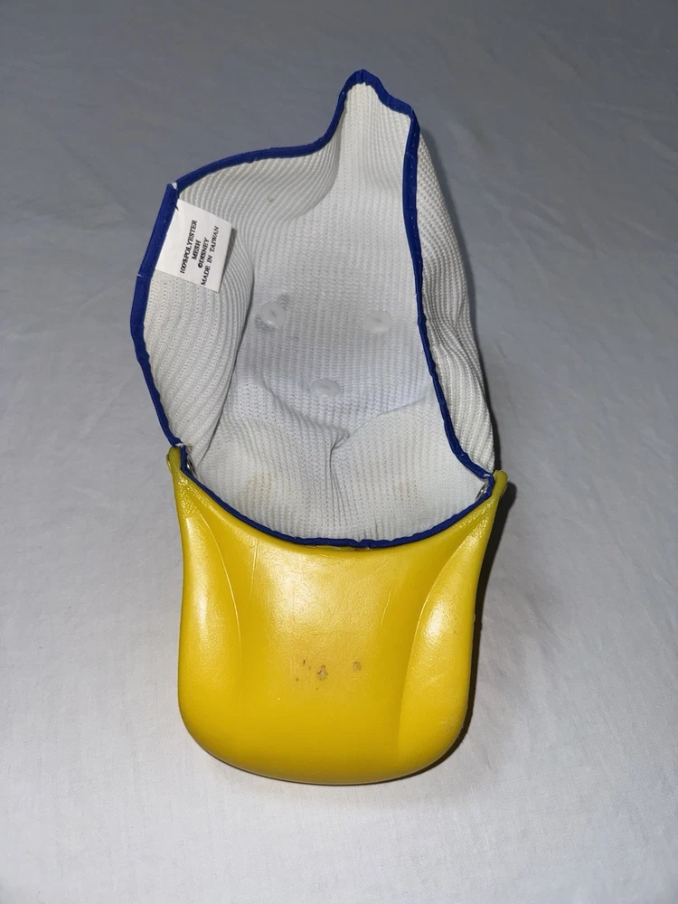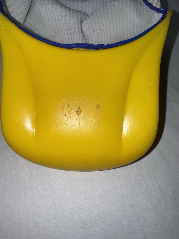 This is a vintage Donald Duck hat. The beak squeaks when you squeeze it. This has general wear. There are some rust spot stains to various white parts of the hat. There are cracks along the blue rim, and various scratches/ marks to the plastic hat and beak. The eye decals also have some cracking due to age. The hat is still wearable, it just shows wear from use and age. Please see all photos. PLEASE READ: Payment is due within 4 days of end of auction. If you have any questions please ask PRIOR to purchase. I ship Monday- Friday, excluding holidays.