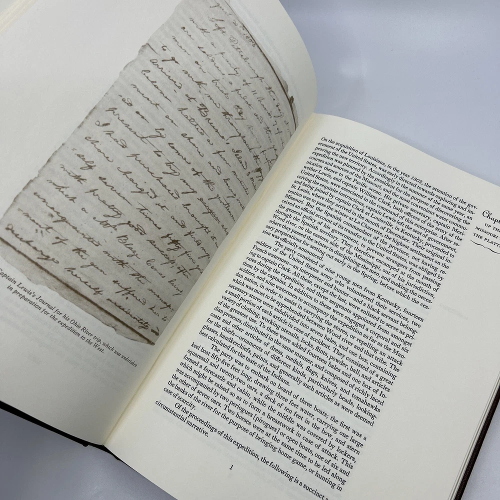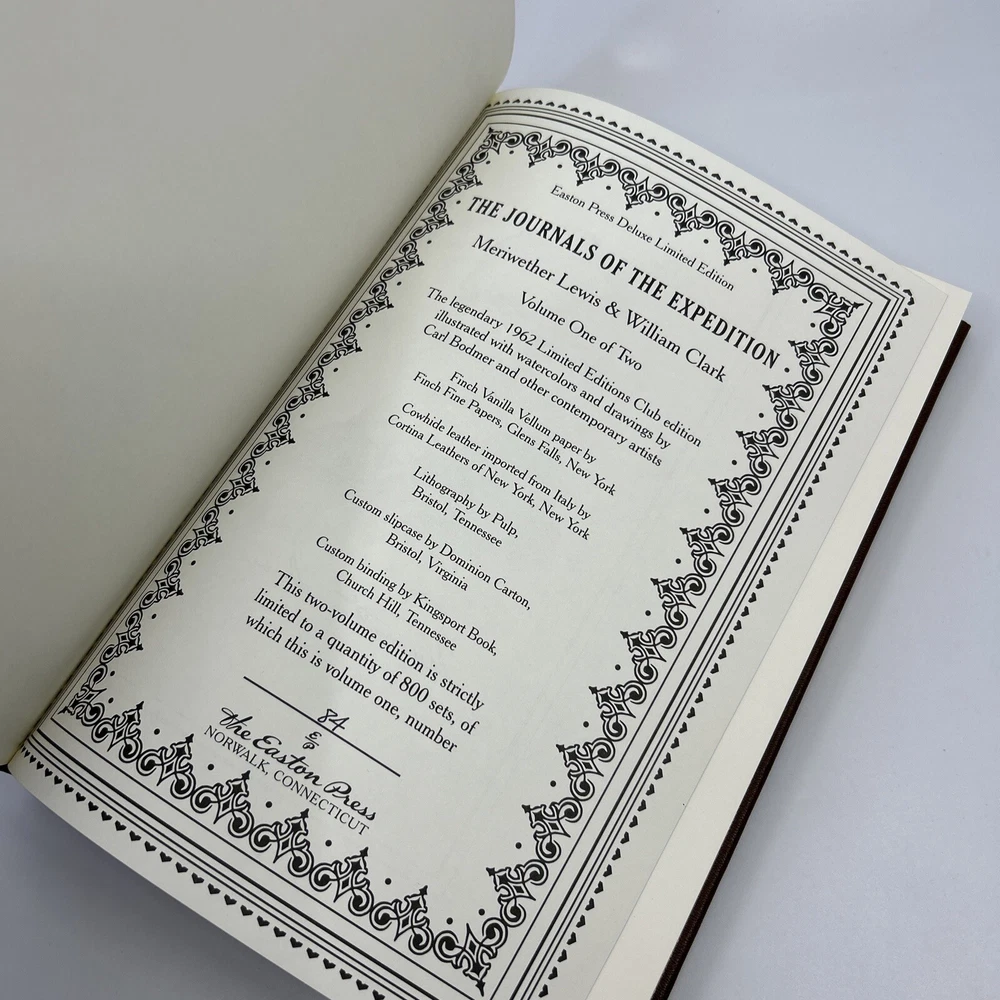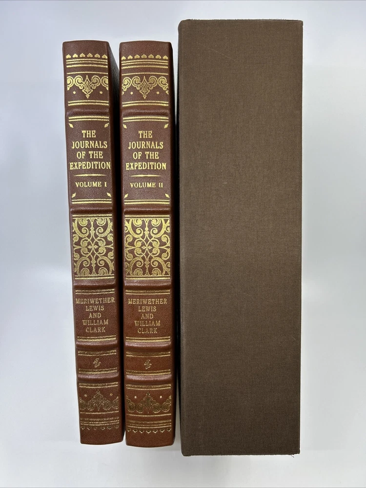 >>> GET IT NOW & ADD IT TO YOUR LIBRARY TODAY! <<< Leather-bound Easton Press 2-volume Deluxe Edition of The Journals of the Expedition by Meriwether Lewis and William Clark (DE) Facsimile/replica/copy of the housed in a cloth slipcase Condition – Very Good/Excellent; no attached bookplates/no embossed seals/no signatures or markings ; oversized & heavy volumes; slight shelf wear/marks/scratches/dings/rubbing to page block; slight shelf wear/marks/rubbing/nicks/bumps to leather covers; some shelf wear/marks/rubbing/bumps to slipcase; may have some dust from storage; please see all photos for details - photos are part of description; from an adult only smoke & pet free household; owl not included Shipping – boxed USPS Media Mail; no international shipping (please do not ask) Payment – through PayPal within two days from the listing's end (no exceptions unless otherwise agreed upon) No Returns/Sold 'As Is' – please contact me if you have any additional questions/issues or with requests for additional pictures >>> GET IT NOW & ADD IT TO YOUR LIBRARY TODAY! <<< *The only true First Editions (1 st Editions) from Easton Press you can be 100% certain about are books with “Signed First Edition " gilt-stamped on the leather spine or “Signed First Edition " printed on the title page and/or on the signature page. It is impossible to tell if any other Easton Press book is a first edition or first printing. Please keep that in mind and if not sure ask sellers for photos proving their claim. **Easton Press does not provide the actual print date in their books. For "Year Printed" the copyright date is listed (oftentimes from the original Heritage Press editions, rights to which were sold to Easton Press), which may or may not indicate an accurate range for manufacture of the book. ***Please note that Easton Press’s term Collector’s Edition is not synonymous with Limited Edition (LE). The only true Limited Editions from Easton Press are copies hand-numbered on the limitation page (i.e. ‘Number 1 of 1200’ or ‘This edition is strictly limited to a quantity of 1200 copies of which this is number 1’). Please keep that in mind and if not sure ask sellers to prove their claim.