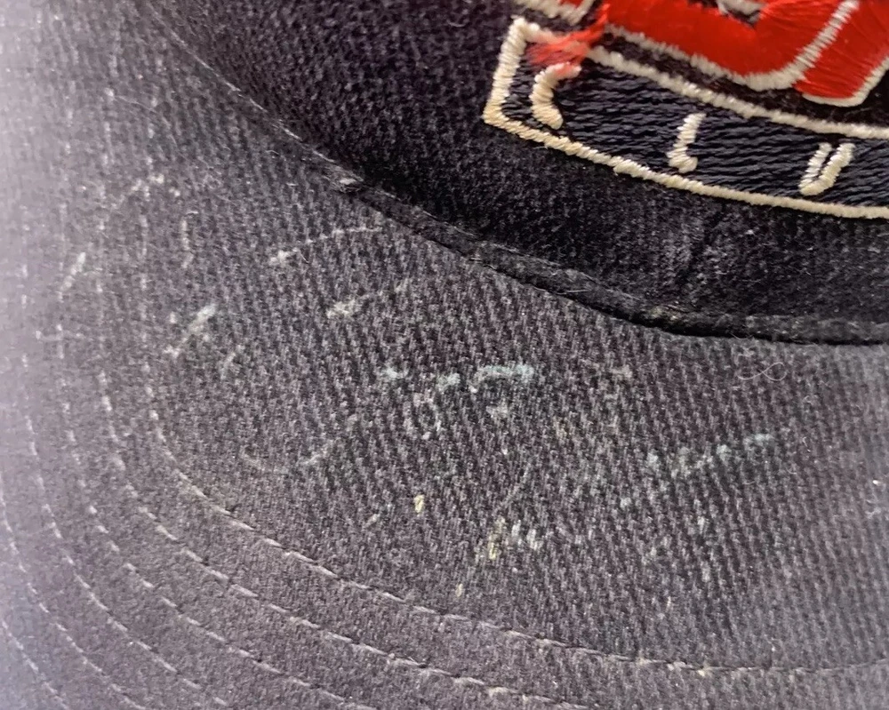 Preowned in fair condition. This hat shows signs of wear and light to moderate staining around the bill of the cap. This hat was acquired at the 1998 MLB players Choice Awards buffet attended by Joe Morgan, Frank Robinson, Ozzie Smith and Dave Winfield. Dave Winfield’s Autograph on the top of the bill is still lightly visible. No COA.