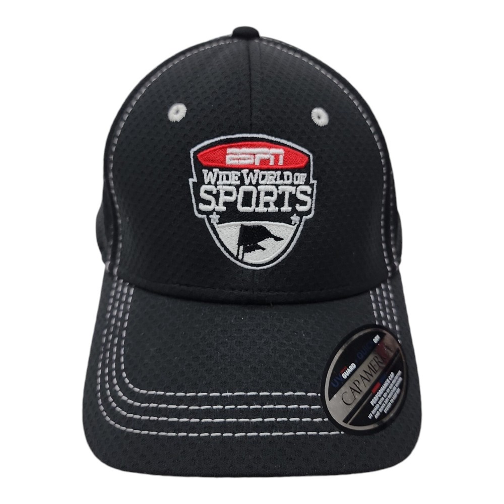 This ESPN Wide World of Sports hat is a must-have for any Disney fan. With its black color and adjustable size, it's perfect for any adult. The hat features Cap America Golf branding, as well as the iconic Disney World logo. The hat is made in China and includes several features such as UV Guard 50+, Quick Dry, and Moisture Wicking. It's perfect for those hot summer days at the theme park. This hat is a great addition to any collection and is sure to be a conversation starter. Get yours today!