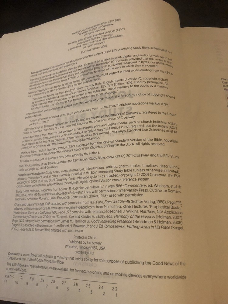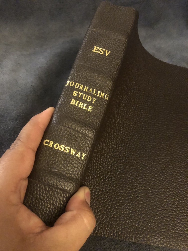 ESV ENGLISH STANDARD VERSION journaling study Bible Soft leather Wide Margin. Shipped with USPS Media Mail. Comes with genuine cowhide leather, the thickness of leather is 4 oz. the leather is very durable, ribs on spine for elegant look, 2 ribbons, this Bible has no markings or highlights whatsoever it has never been used plz examine pics carefully before purchasing and feel free to ask any questions, I do my best to respond quickly and also be sure to check out the other bibles that I have for sale, and if you want a certain Bible rebound let me know I can do that too, God bless.