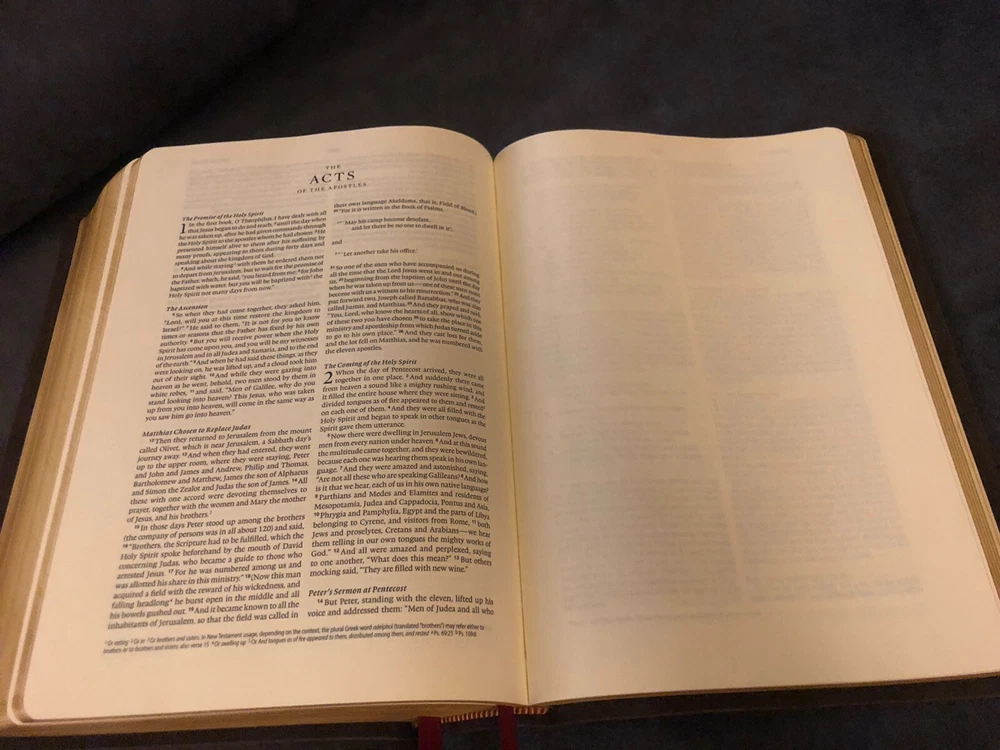 The shipping was a little confusing, it was bouncing around between post offices in eastern nj. Packaging was a little damaged but the Bible was ok. The Bible is as described, very beautifully done. The Bible is truly a value to me and a great addition to my collection to further my studies.