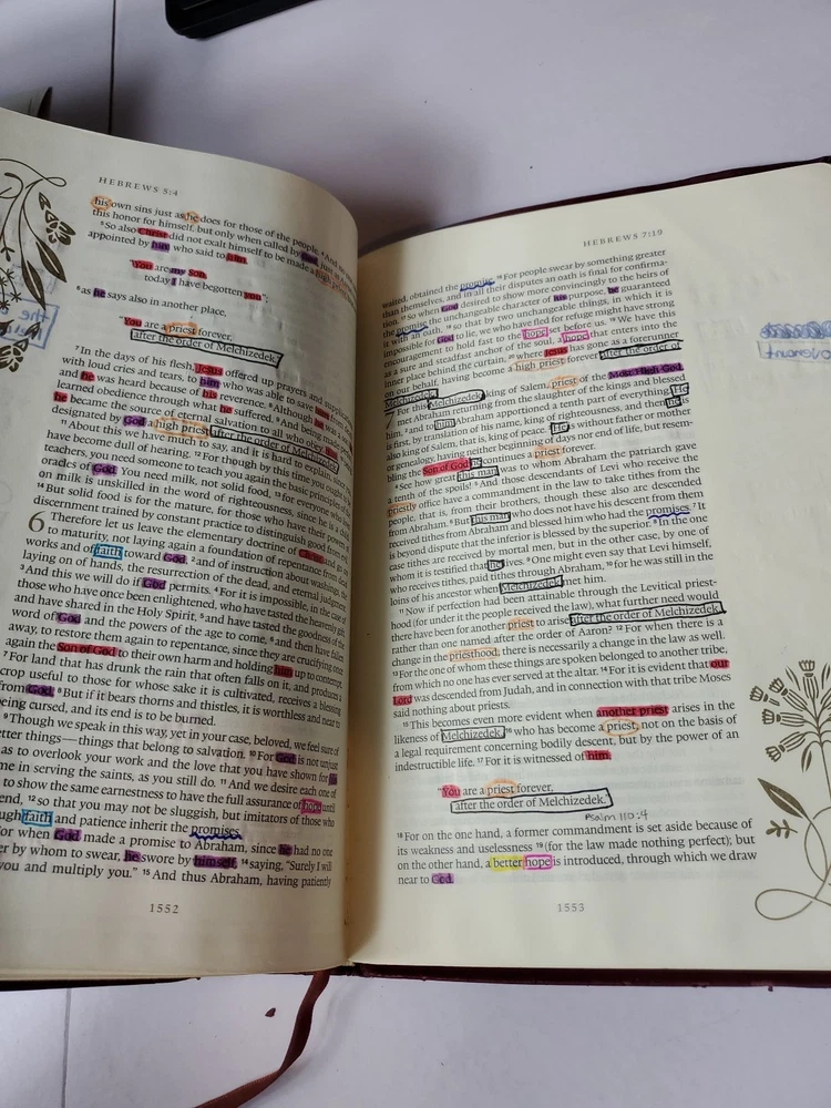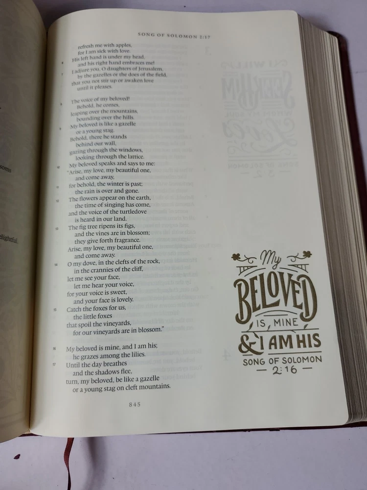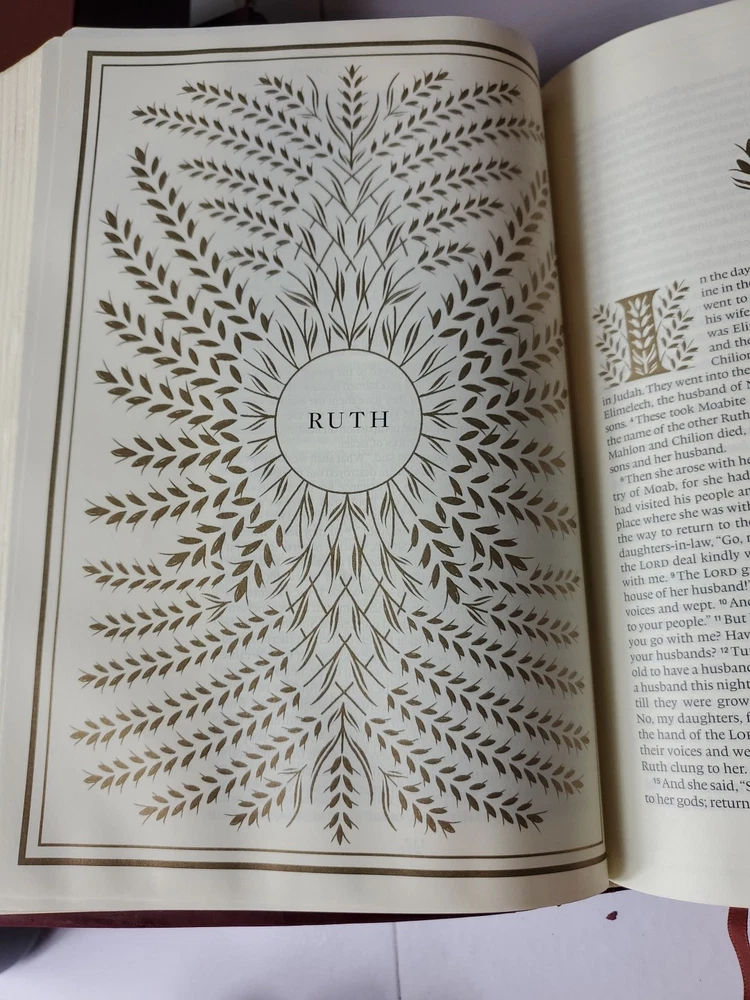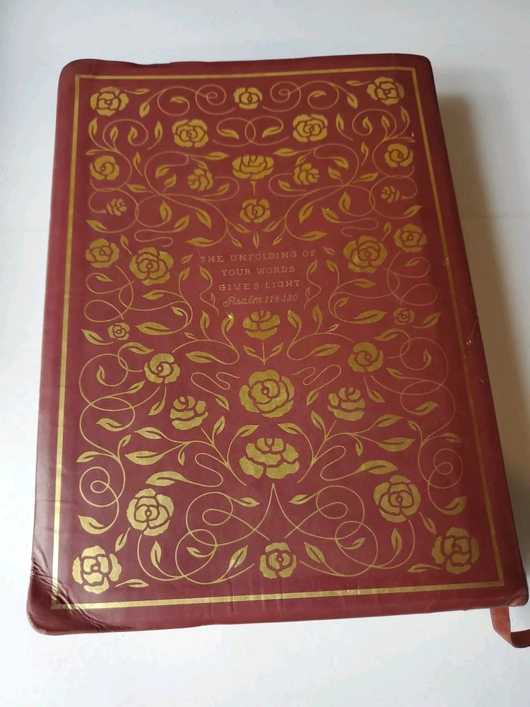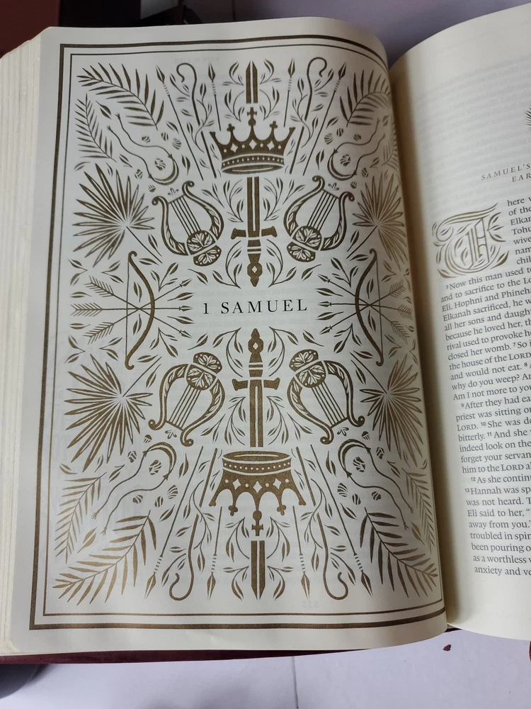 The "ESV Illuminated Bible, Art Journaling Edition" in Burgundy Leather features wide margins, gold gilded page edges, and illustrations. Published by Crossway in 2017, this edition of the English Standard Version Bible includes elements for art journaling and is part of a historical book series. Authored by Crossway and Esv Bibles, it is an inspirational resource for topics related to Christianity, Jesus Christ, and Christian history.