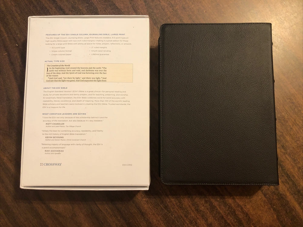 This bible can be personalized for an additional charge. Type in the item number 294285115803 into the eBay search bar or click the link below to purchase personalization. Click here to purchase personalization Large Print Single Column Journaling Bible Measures appx 9.75 x 7 x 1.7 Shipping will combine automatically based on weight on any items purchased at the same time, just add any items to your cart and checkout as one purchase! No returns