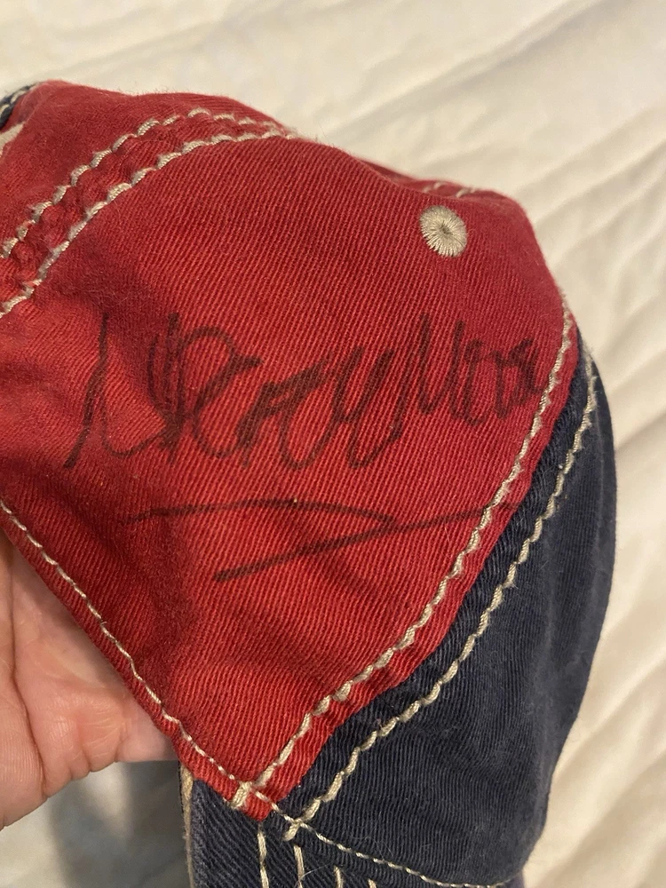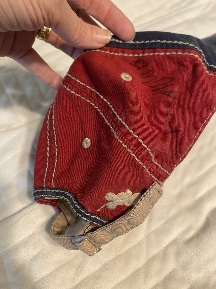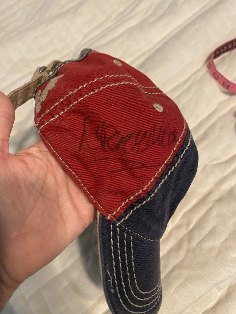 Buy now! Excellent condition. This hat is signed. I hv no idea whose signature. If you figure that out let me know. Adjustable for adult head This will be shipped in a bag. This comes from a clean non smoking home I ship quickly Long time eBay seller