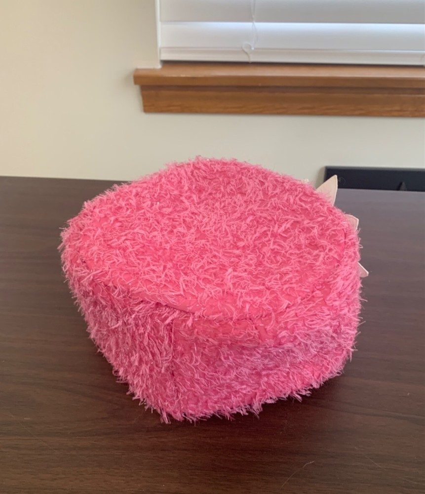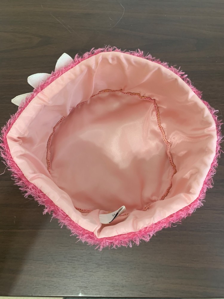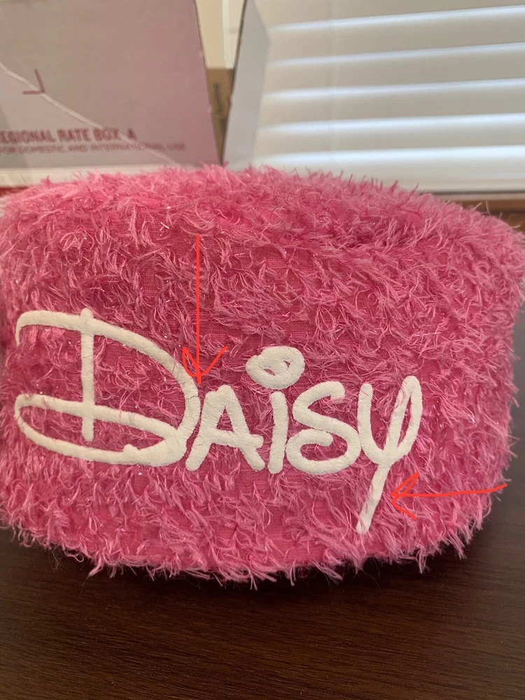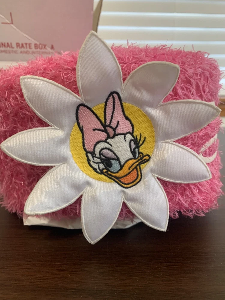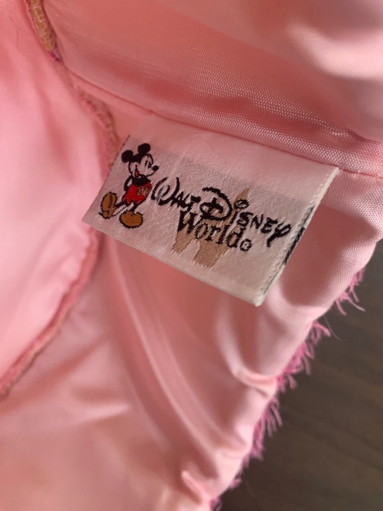 Vintage Daisy Duck textured pink pillbox hat, with pink satin lining. EUC - no stains, smells, snags. Flower is satin and embroidered. "Daisy" spelled out has two places with tiny cracks on "D" and "y". Please see photos. I purchased this at Disney World circa 1998. Worn once - has been stored for 20+ years. No size listed on tag. Measures approximately 7.5" across, 4" tall. Comes from non-smoking, pet friendly home.