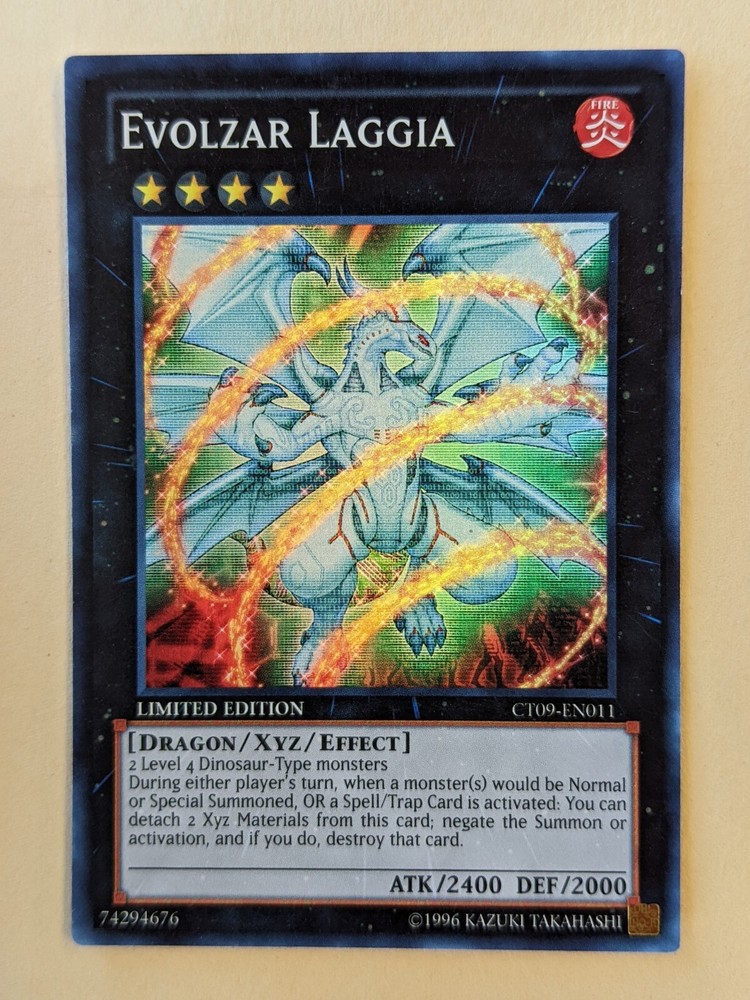 You are bidding on a YUGIOH-EVOLZAR LAGGIA-LIMITED EDITION SUPER RARE-CT09-EN011 This card is not graded but in good condition. The front and back surfaces have slight scratches seen from certain angles. You get the card shown in the pictures. I will ship your card in a top loader, bubble wrap then cardboard mailer. I will combine shipping. My shipping price is $2.99 for up to 9 regular thickness cards and $3.99 and up for anything over 10 cards. Payment must be made within 3 days of purchase. I will ship 2 business days after receiving payment. I don't ship on Saturday or Sundays. To ALL my customers, please be patient as the mail has slowed down due to the VIRUS. THANK YOU for your patience and understanding. Be safe!! There is a delay at customs, my US customers, please note it could take up to 60 days to receive your cards. If you have any questions, please don't hesitate to contact me. Please check out my other items at Jethro's cards and collectibles. Have a great day, cheers!