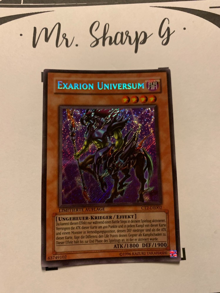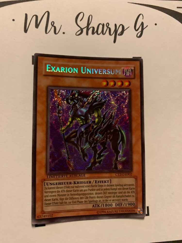 - Mr. Sharp G - - Online Store - TRADING CARDS-TCG-COLLECTION-SETS-TOURNAMENT-Yu Gi Oh! Konami * * * EXARION UNIVERSUM - LIMITIERTE AUFLAGE CT2-DE002 - Bitte schauen Sie sich die beigefügten Bilder an, um einen vollständigen Überblick über den Zustand jedes Artikels zu erhalten. - Zustand des Artikels: Neu* - in einem neuwertigem Zustand. (* Neuer Zustand - kann aber leichte Mängel wie 'whitening', leichte Eindrücke, Dellen u.a. haben - die von der Herstellung der Karte aus Produktion stammen, bitte den Bildern und in der Beschreibung den Zustand entgegennehmen) - Typ/ Serie: UNGEHEUER-KRIEGER/ EFFEKT / LIMITIERTE AUFLAGE CT2-DE002 - Seltenheitsstufe/ Rarity: SECRET RARE - Edition : COLLECTOR'S TINS 2005 / 2005 * * * + Kartenschutzhülle & Toploader inklusiver im Preis + mehrfache Bestellung = einmalige Versandkosten + versicherter Versand Bestellung in Höhe - v. 8,50EUR in Deutschland/ Inland - v. 12,50EUR im Ausland/ International + Großbestellungen kostenloser Versand Inland und International - Bei Fragen, Details, nicht im Bestand gewünschte Karten/ Artikel oder Versandgutschriften schreiben Sie uns! Wir freuen uns auf Ihre Nachricht! - Vielen Dank für Ihr Vertrauen, Unterstützung und Besuch in unserem Store ! - Ihr Mr. Sharp G Team