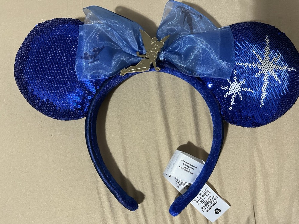 This product is a blue and gold ear hat featuring Tinker Bell from Disney's Peter Pan franchise. It is a part of the Disney Parks Main Attraction collection and is designed for fans of all ages, including kids, teens, and adults. The hat is suitable for girls and women and is one size fits all. It is a collectible item and a great addition to any Disney fan's wardrobe.