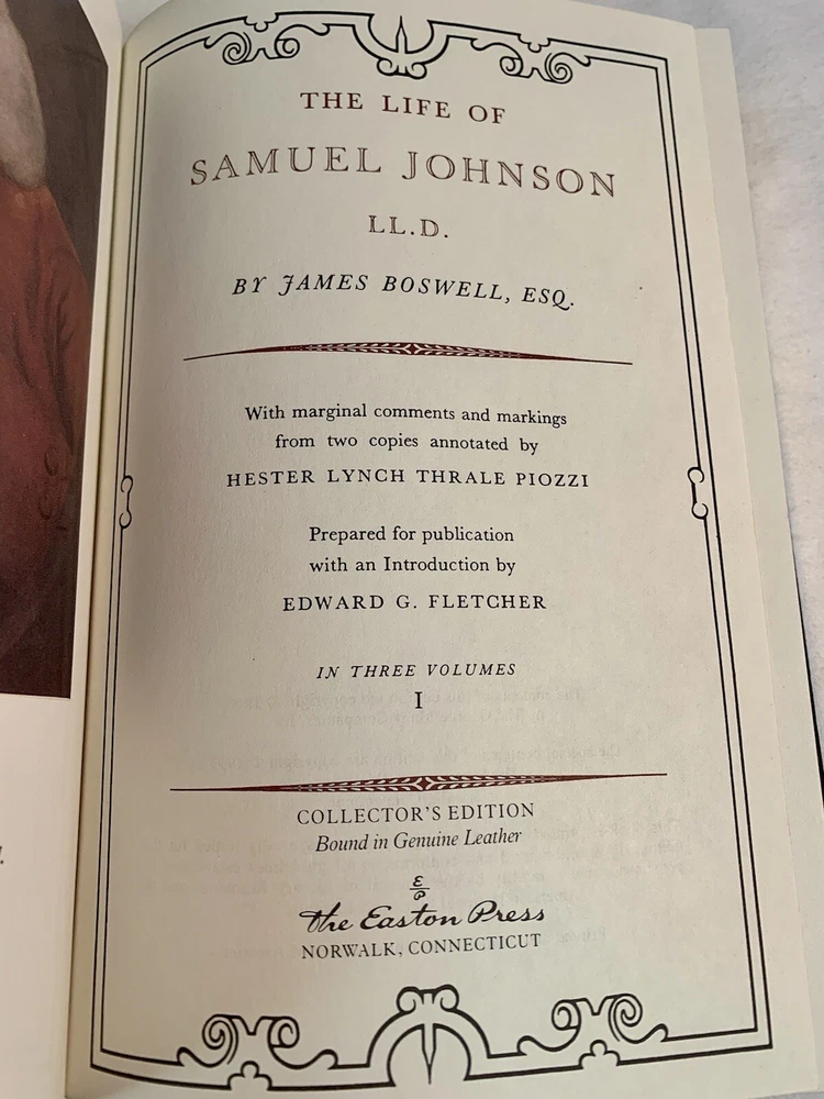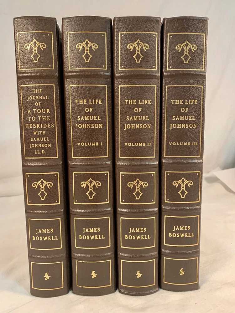 PLEASE VISIT MY EBAY STORE FOR MORE RARE BOOKS FIRST EDITIONS AND SIGNED COPIES FOR YOUR CONSIDERATION IS THIS PREVIOUSLY OWNED FOUR VOLUME SET OF THE EASTON PRESS ~THE LIFE OF SAMUEL JOHNSON~ BY: JAMES BOSWELL ~EXCELLENT USED CONDITION~ APPEAR TO NEVER BEEN READ LEATHER BOUND EDITIONS SOME VERY LIGHT SHELF WEAR IN A FEW AREAS PREVIOUS OWNERS NAME ON EASTON PRESS STICKER ON AN INSIDE FRONT PAGE ~~~SEE THE PICTURES~~~ ~ATTENTION BUYERS~ YOU ARE BUYING THE EXACT ITEM(S) SHOWN IN THE PICTURES ADDITIONAL PICTURES ARE AVAILABLE BY REQUEST ~RETURNS ARE NOT ACCEPTED~ I SHIP THE SAME OR NEXT BUSINESS DAY SHIPS VIA USPS MEDIA MAIL ~FULLY INSURED~ VISIT MY EBAY STORE FOR MORE RARE BOOKS FIRST EDITIONS AND SIGNED COPIES THANKS FOR LOOKING AND GOOD LUCK!!!