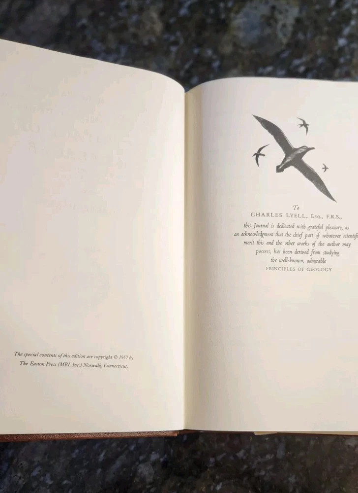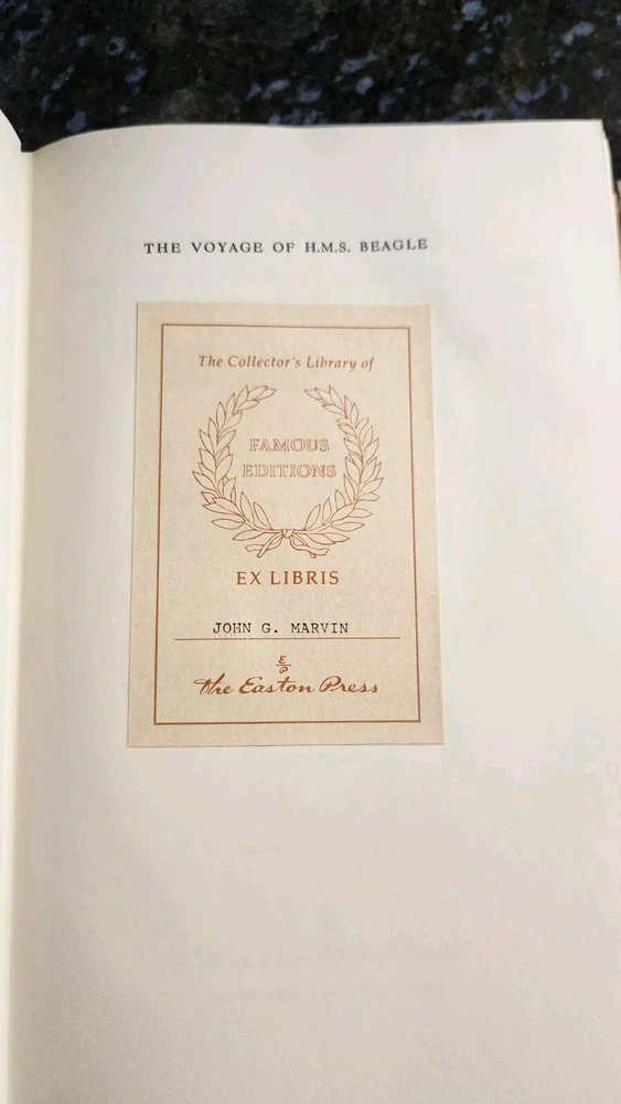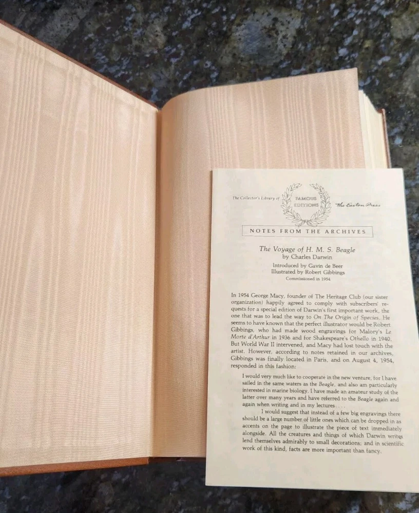 Up for sale is this AMAZING 1957 Famous Editions Easton Press copy of The Journal of Charles Darwin. It is bound in brown leather and has gold guild. This 1957 edition has been kept on the shelf of a smoke free home and has the name plate attached. Collector's Notes are included. As all of my Easton Press books have been on a shelf for 40+ years there is some minor shelf ware. Please see the pictures posted to see what a great collectable this is. I will be posting about 100 books so please check out my other listings.