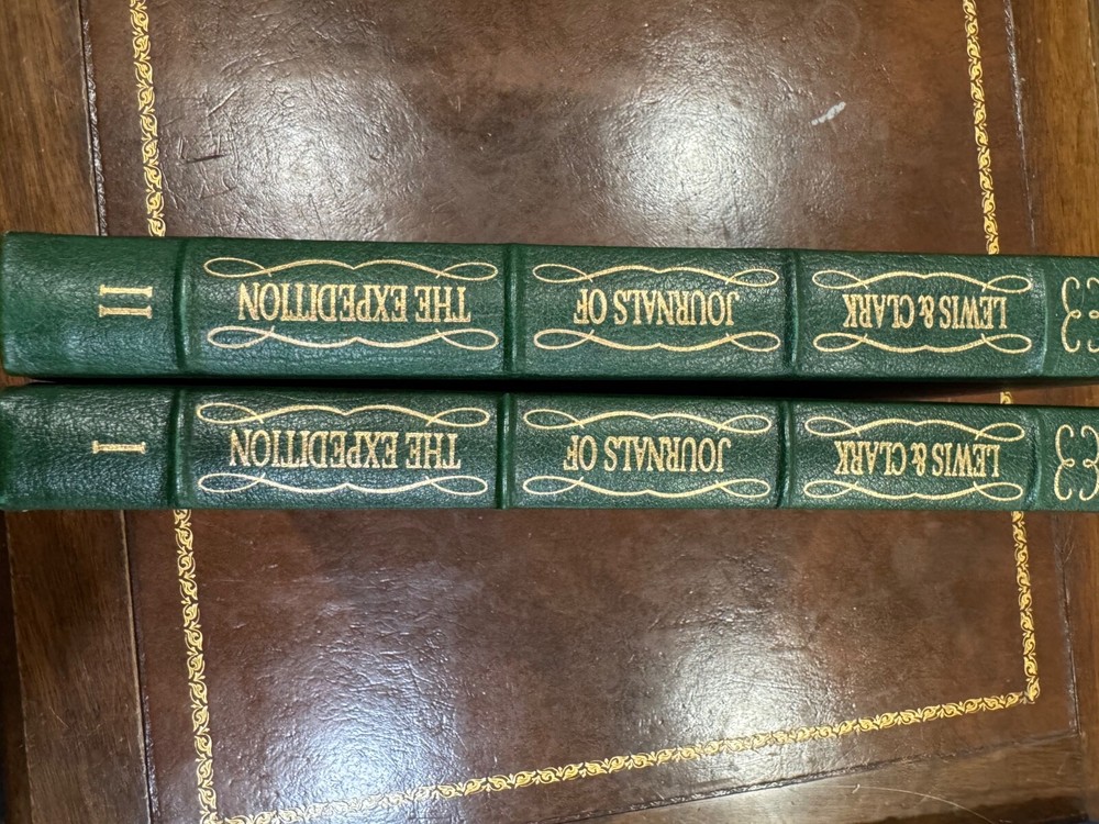 THE JOURNALS OF THE EXPEDITION UNDER THE COMMAND OF Capts LEWIS and CLARK to the sources of the Missouri, thence across the ROCKY MOUNTAINS and down the river COLUMBIA to the PACIFIC Ocean, performed during the YEARS 1804-5-6 by ORDER of the Government of the United States. Edited by NICHOLAS BIDDLE with an introduction by JOHN BAKELESS Slightly used leather binding, but books have never been read. Both Volume I & II in excellent condition.