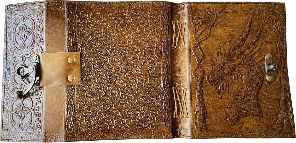 Store New Arrivals Add to Favorite View Feedback Embossed Leather Bound Journal Dragon Game of Thrones Diary with Clasp Lock Vintage Perfect Notebook Blank Book of Shadows Unlined Paper Sketchbook 7X5 Inch Description Item model number 6677880099 Manufacturer SHAISTA HANDICRAFT Style Vintage Product Dimensions 7"L x 5"W x 1.2"Th Number of Items 1 Color Charcoal Color Pages 120 Cover Material Leather Material Type Genuine Leather Sheet Size 5-x-8-inch inches Manufacturer Part Number 6677880099 Item Weight 15.8 ounces Theme Book Ruling Plain Ruling Type Plain Is Discontinued By Manufacturer No Special Feature Lock Brand Shaista Handicraft Size 7x5 Handmade dragon leather bound journal game of thrones notebook dimension : 7(H) x 5(L) x 1.2(W) inches Planner notebook has an antique c-lock swing clasp to keep your notebook safe and organizeable Write goals and aspirations. Track the progress and celebrate on completion of each goal More than just a diary / notebook, charcoal color dragon embossed leather journal is sure to earn a place as your most prized possession. Organizer contains recycled cotton blank pages which are perfect for mini notes. Handcraft leather diary is an awesome find for book lover or literature present. Embossed leather bound journal dragon game of thrones diary with clasp lock vintage perfect notebook blank book of shadows unlined paper sketchbook is very beautifully embossed and hand made 120 leaves (240 pages) notebook features , with embossed designs on both front and back. Our Wiccan/Pagan inspired handmade leather journal is a great tool for anyone wanting to record inspired thoughts, mystical moments, and potential rituals and recipes. Handmade in India, our journals are influenced by symbolism that is derived from the Wicca/Pagan community, creating a personalized space where your inner creative genius can flourish. Sketchbook is very good for keeping by the bedside to jot down dreams, or for use as a diary or journal. Notebook has an antique vintage C-Lock brass swing clasp to keep your secrets from prying eyes. Handcrafted journals contain acid less, handmade, archival Quality, linen - cotton parchment paper by a family owned company that has been in the handmade paper making business for almost 150 years. The book is approximately 7 inches tall, 5 inches wide, and 1.2 inches thick, and the pages are unlined. This brand new journal makes an ideal present for that special someone or simply to keep for yourself. (Due to computer screen resolution color shades of product may slightly vary from images shown.) ABOUT US We offer the best prices around on high quality products. Our E-store includes media such as books, movies, music and games while offering electronics, toys, sporting apparel, clothing, tools, general home, garden items and more. SHIPPING We are always working hard to ensure your package arrives as soon as possible. Please understand that some factors like weather, high postal traffic, and the performance of shipping companies are outside of our control. We offer free shipping to the lower 48 states and ship within 2 business days of payment, usually sooner. We do not accept P.O. Boxes. Please provide a physical address. RETURNS We offer a 30-Day Return Policy on items which you are not completely satisfied with. You have the option for a full-refund or an exchange of the item. No returns are available on items shipped outside of the USA. PAYMENT We accept PayPal. CONTACT US This page content is yet to come Please ad us to your favorite seller and visit again later Thank You