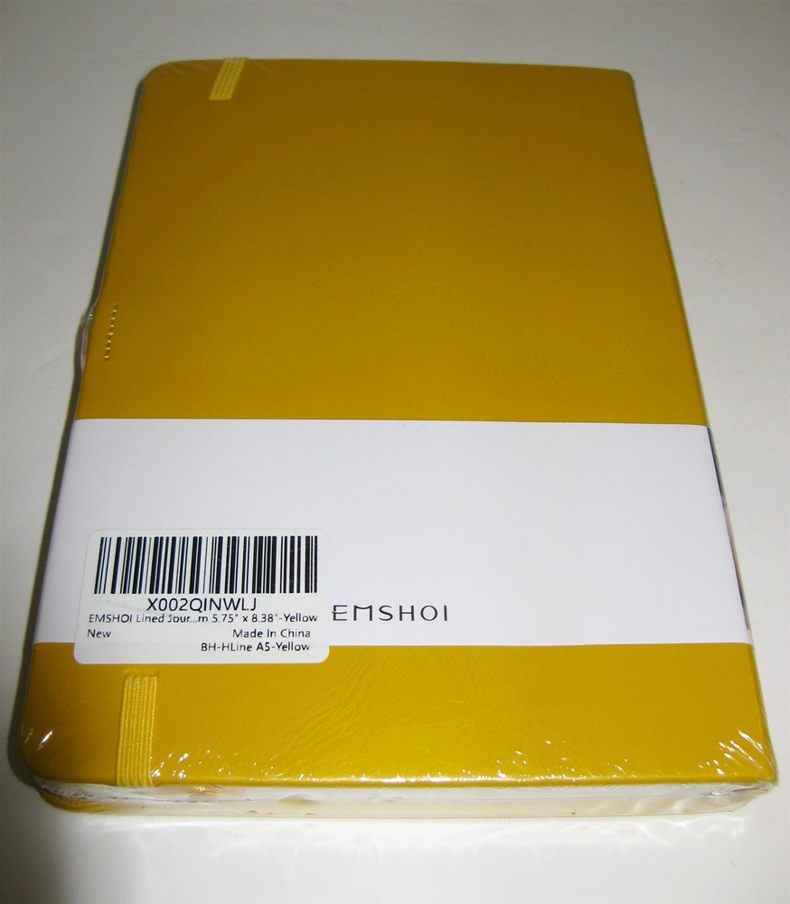 Emshoi Lined Journal Hardcover Gold Leather Covers Elastic Closure, 1 Pen Holder Loop 2 Ribbon Bookmarks, 1 Back Pocket, Free Sticky Notes 256 Pages Size - 5.75" x 8.38" New Still sealed Powered by Si...