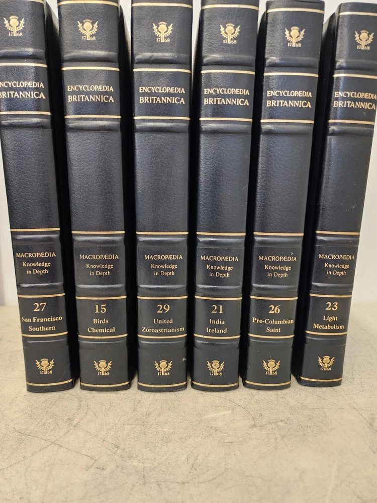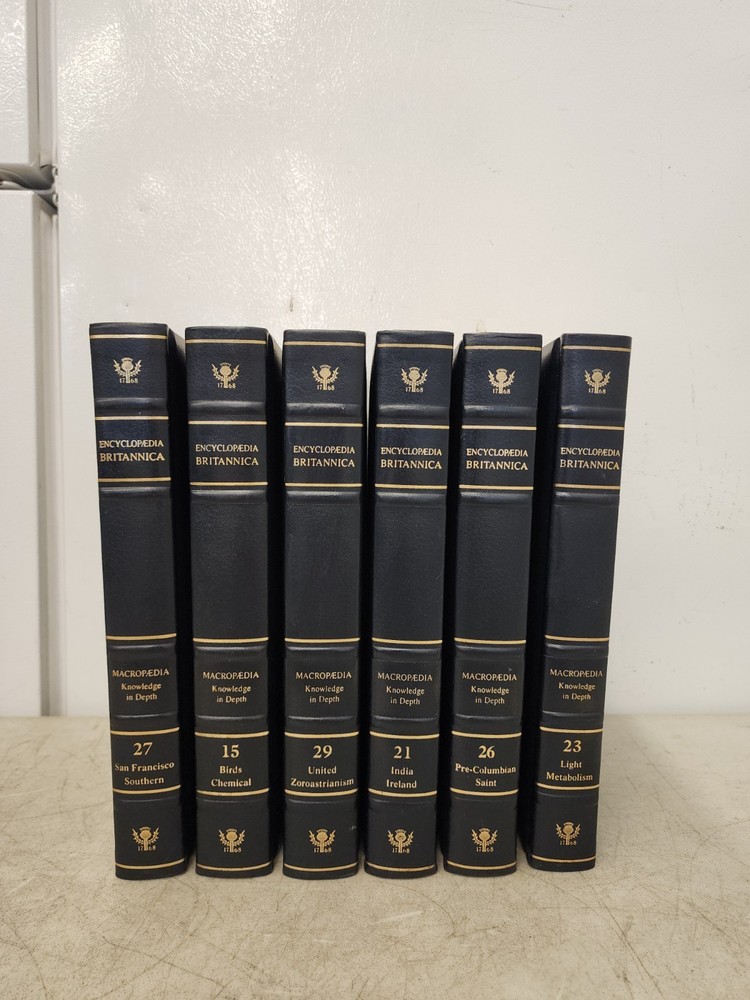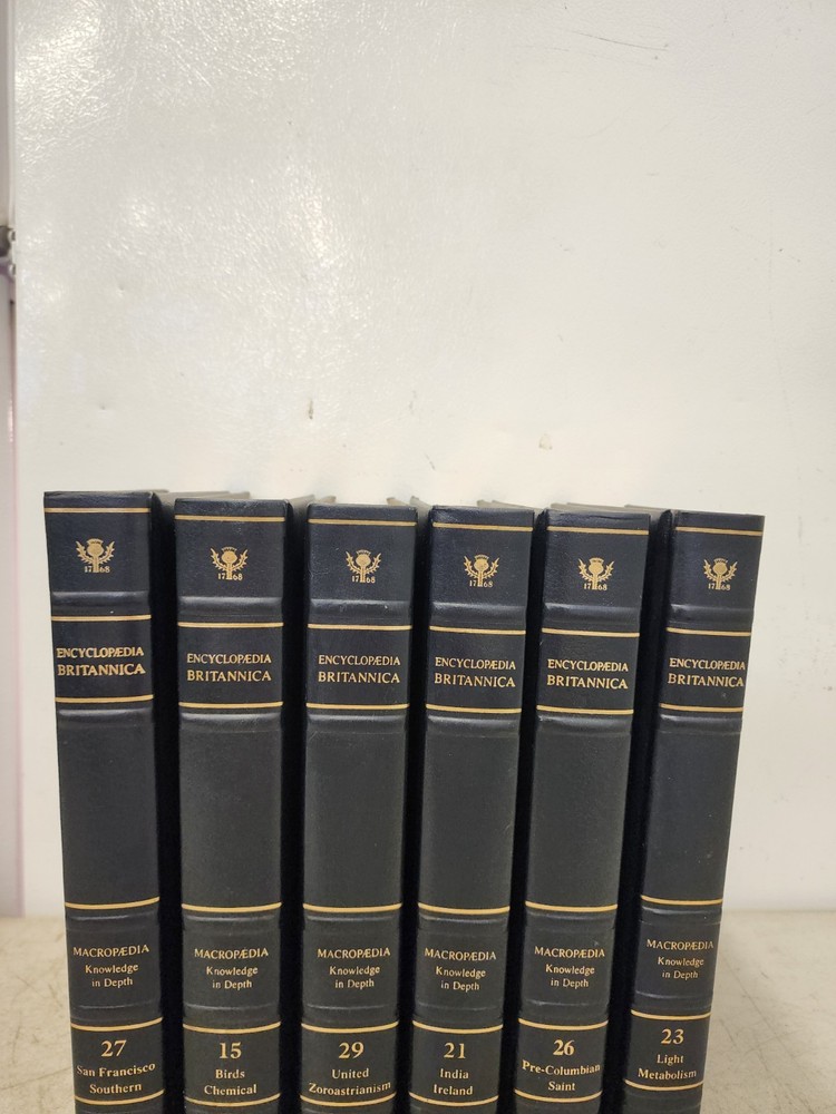 Encyclopedia Britannica 1768 Lot Of 6 Volume 15,21,23,26,27,29. Please review photos and message me if you have any questions. Item will be Shipped fast with USPS Ground Advantage Or UPS Ground Thank ...