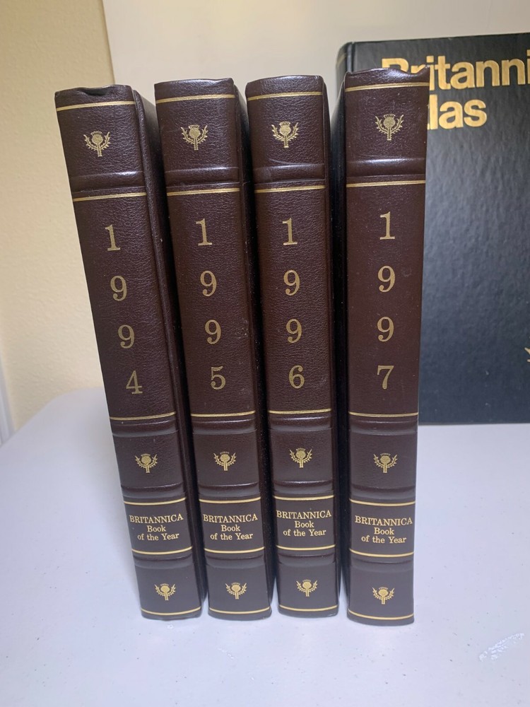 The 1994 through 1997 editions of the Encyclopedia Britannica World Data books. All of the books are in almost unused condition....