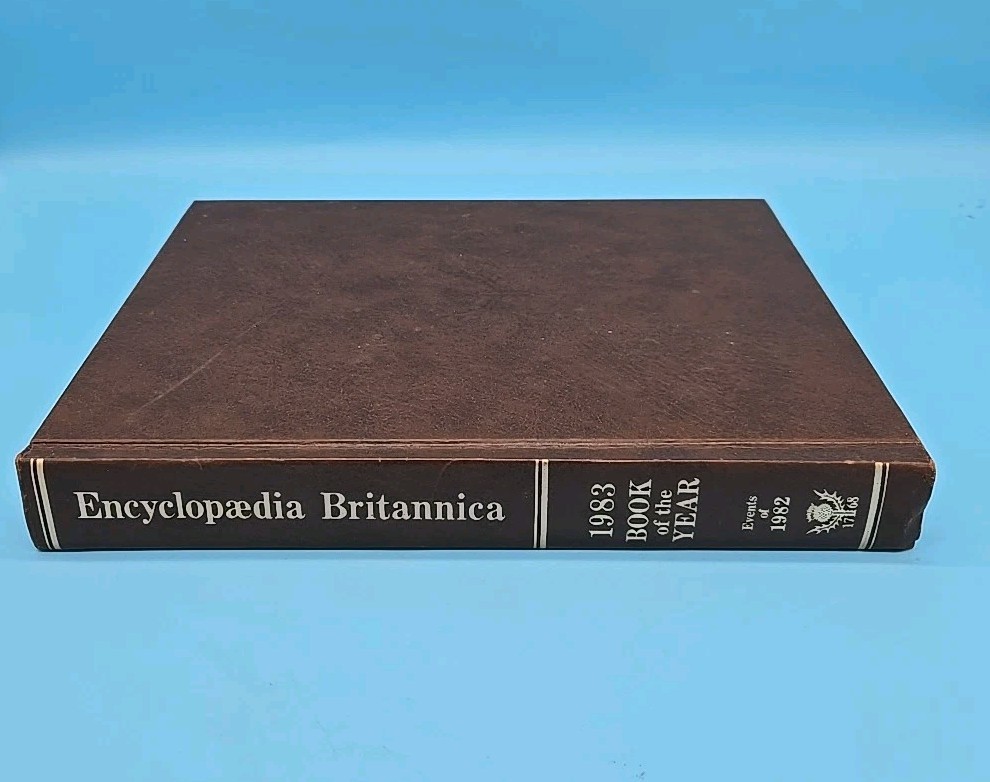 Encyclopedia Britannica Book Of The Year Events from 1983 Leather Hardback Size: 11.25 x 9 Pages are yellowing - See Photos...