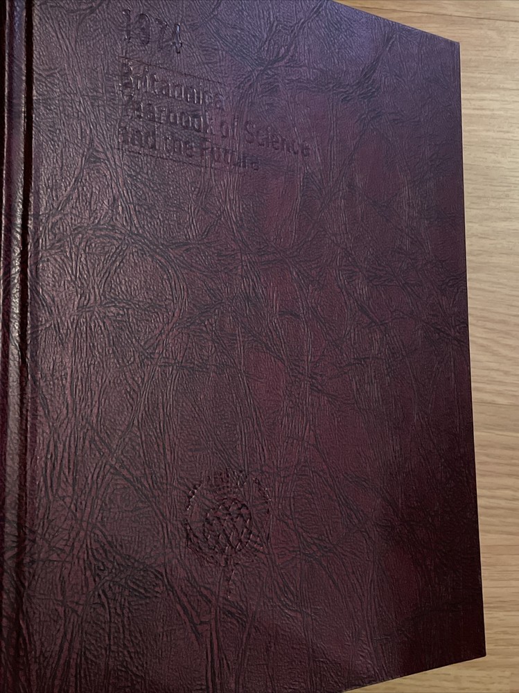 Encyclopaedia Britannica Science and The Future 1974 Yearbook HC Leather Bound. I have many many more antique and vintage books up for bid and we do combine shipping. These books all came from a estate in the Detroit Michigan area. Most look like new and some are acceptable. Some of the books may have inscription inside, light wear, corner bumps, but I try to take pictures of all the defects if any. Thank you for looking,,,,,,,,Please email any and all questions Welcome to our auction house,,, i will be listing many things most starting under $5.00. We do combine shipping, so please see our other auctions. Please email any and all questions. Thank you for looking and have a blessed day " Estate find ,,,, All items sold as is, no refunds or returns continental US only, please email any and all questions We ship Most items within 1 to 2 business days ( not including Sunday’s and Holidays.We offer free shipping and calculated shipping on various items. We will combine shipping on multiple item purchases, as long as it is a calculated item and not free shipping. ( unless stated in the auction). We do offer free local pickup on large bulky items. Returns: Most items are from estate sales and auction houses. We cannot guarantee items are from smoke free pet free homes. All items are washed and tested before listing. Items are sold as is with no returns, Items are described to the best of my knowledge. Always ask all questions before purchasing. If return is accepted, buyer is to pay for return shipping. Feedback: We work hard to keep our feedback rating in good standing.If you are pleased with your item, please take a second to leave us a positive 5 star rating, and if there is a problem, please contact us immediately using EBay messaging service before leaving a negative. We will work with you to correct the situation, and make your transaction right. Thank you for your business, and happy shopping