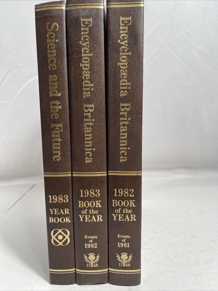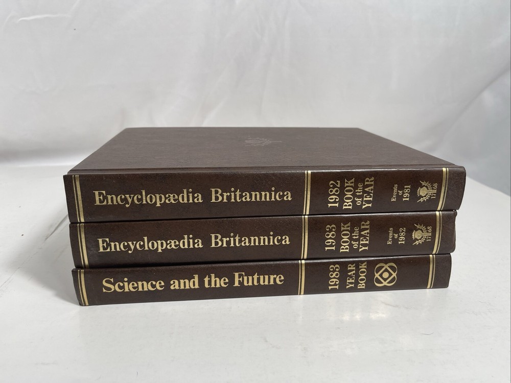 This Encyclopedia Britannica set includes: 1982 Book of the Year 1983 Book of the Year 1983 science and the Future Year Book Yearbook of Science and the Future from 1983 is a must-have for any collector or enthusiast of antique books. It contains a wealth of information on a variety of topics, including science, technology, and the future. The book is beautifully bound and would make a great addition to any library or collection. In addition to the Yearbook of Science and the Future, this listing also includes a 1983 and 1982 book. The set is perfect for anyone interested in the history of science and technology. Don't miss out on this opportunity to own a piece of history.