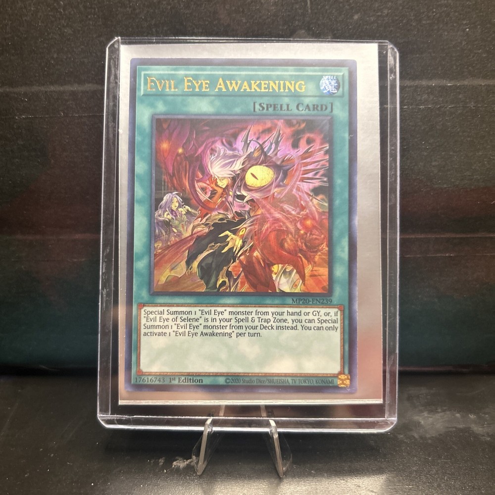 Unleash powerful strategies with the Evil Eye Awakening card from the Yu-Gi-Oh! TCG. As a key component of the 2020 Tin of Lost Memories set, this Ultra Rare Spell-Normal card is a must-have for collectors and competitive players alike. Its card number, MP20-EN239, marks it as a unique addition to any deck or display. Crafted by Konami and presented in English, Evil Eye Awakening embodies the essence of the 2020 series with its first edition prestige. Whether you're looking to strengthen your game or treasure a piece of Yu-Gi-Oh! history, this card is a symbol of both playability and collectibility.