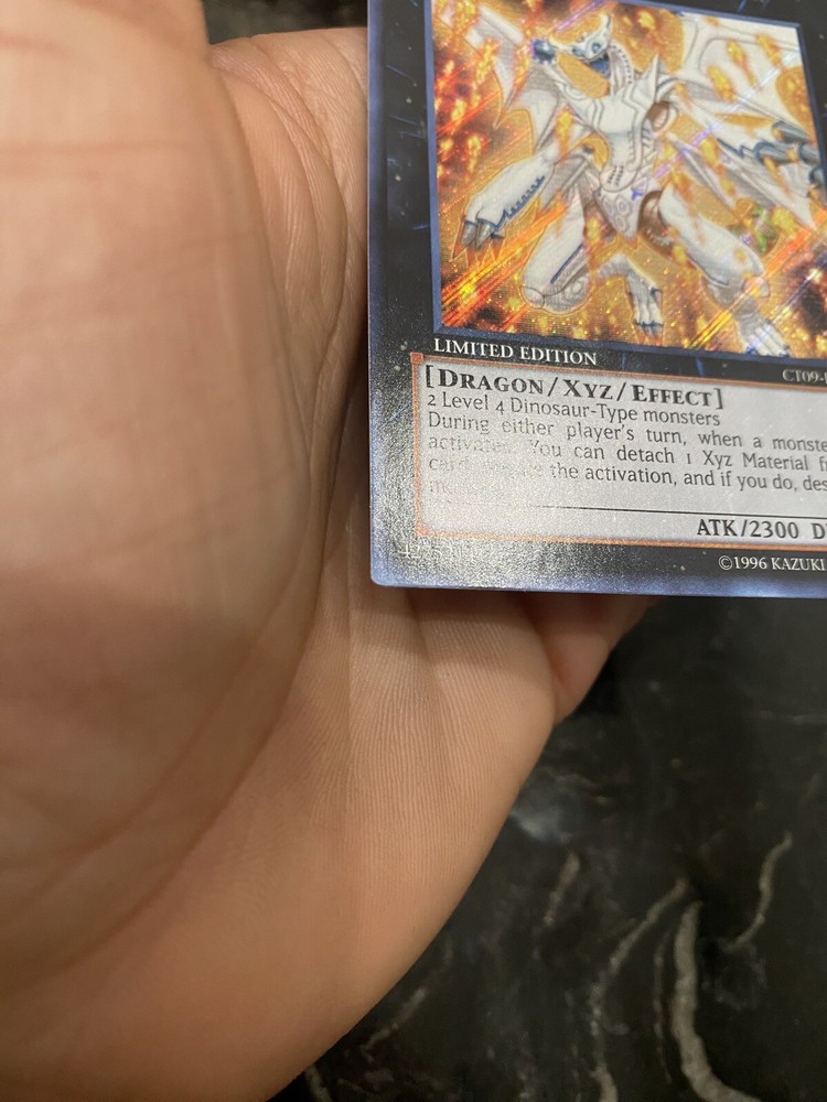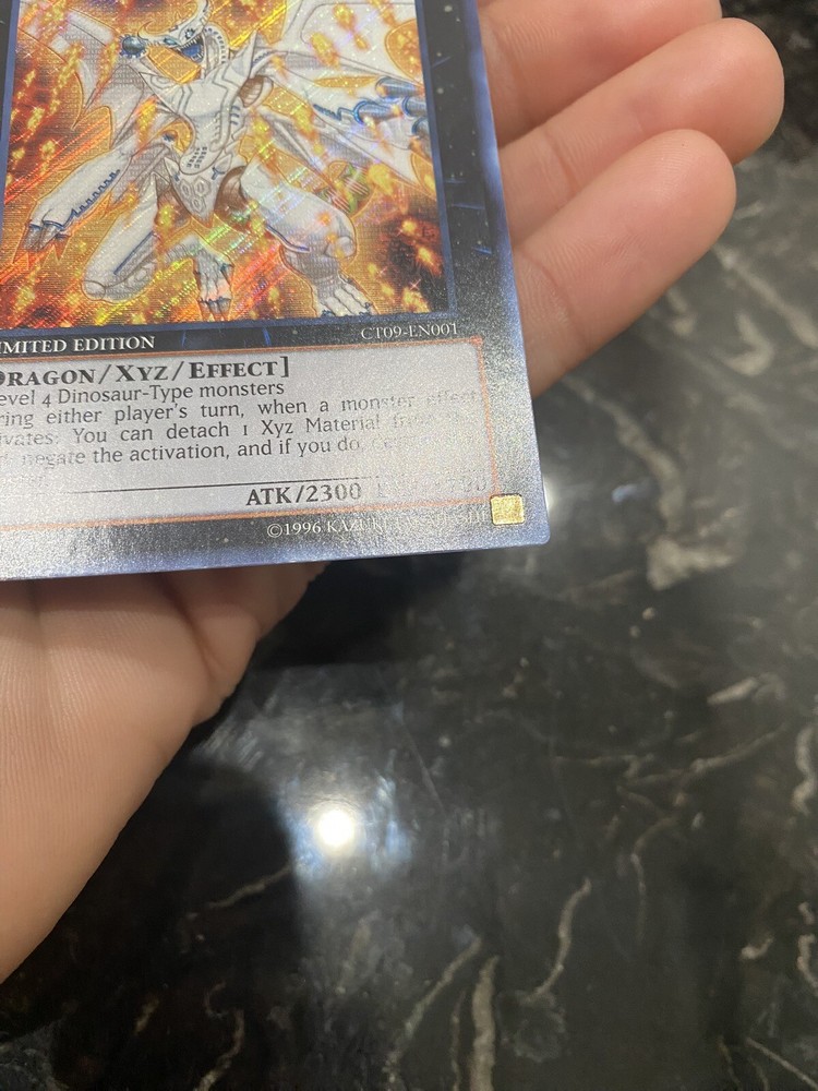 Enhance your Yu-Gi-Oh! TCG collection with the rare Evolzar Dolkka card from the 2012 Collectors Tins set. This Xyz/Effect Monster card features a Fire attribute, 2300 attack power, and 1700 defense/toughness. It also has the speciality of negating opponent's monster effects, making it a valuable addition to any player's deck. This limited edition Secret Rare card showcases Rex, a dragon creature/monster type, with a holo finish. The card is in ungraded condition and has standard card size. It is suitable for players aged 6+ and is manufactured by Konami. The card comes with other features such as being in the English language, having the card number Ct09-En001, and belonging to the Toys & Hobbies and Collectible Card Games categories.