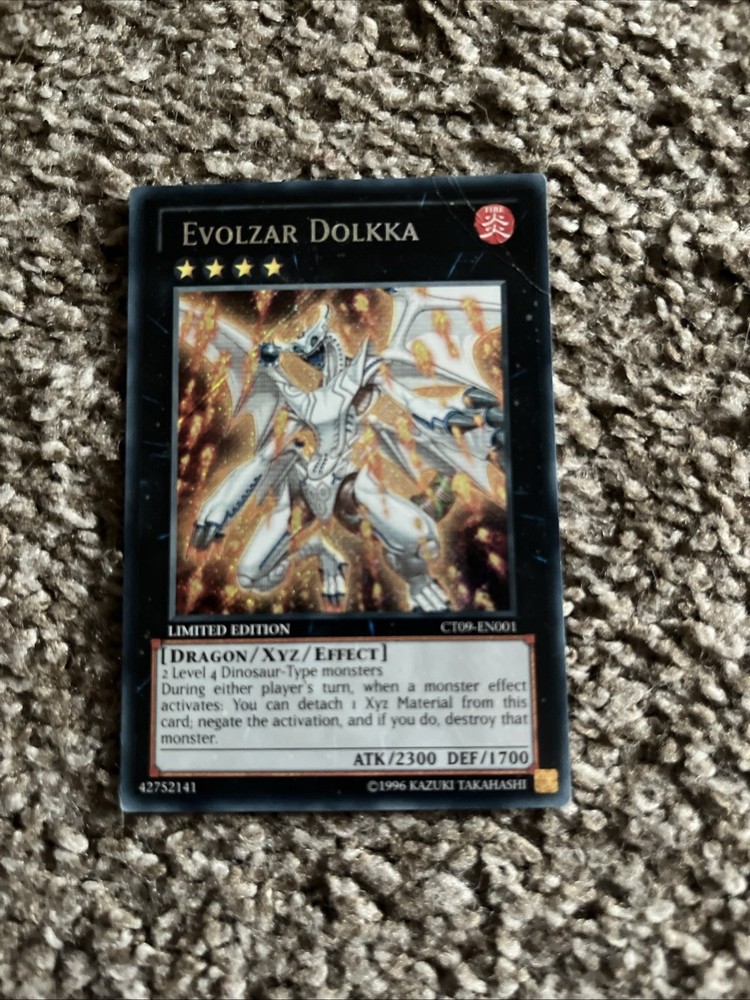 The product is a 2012 Collectors Tin Limited Edition card named Evolzar Dolkka CT09-EN001 from the Collectible Card Game category. The card is in lightly played condition and has not been graded. This collectible item appeals to fans and collectors of CCGs looking to add a rare and sought-after card to their collection.