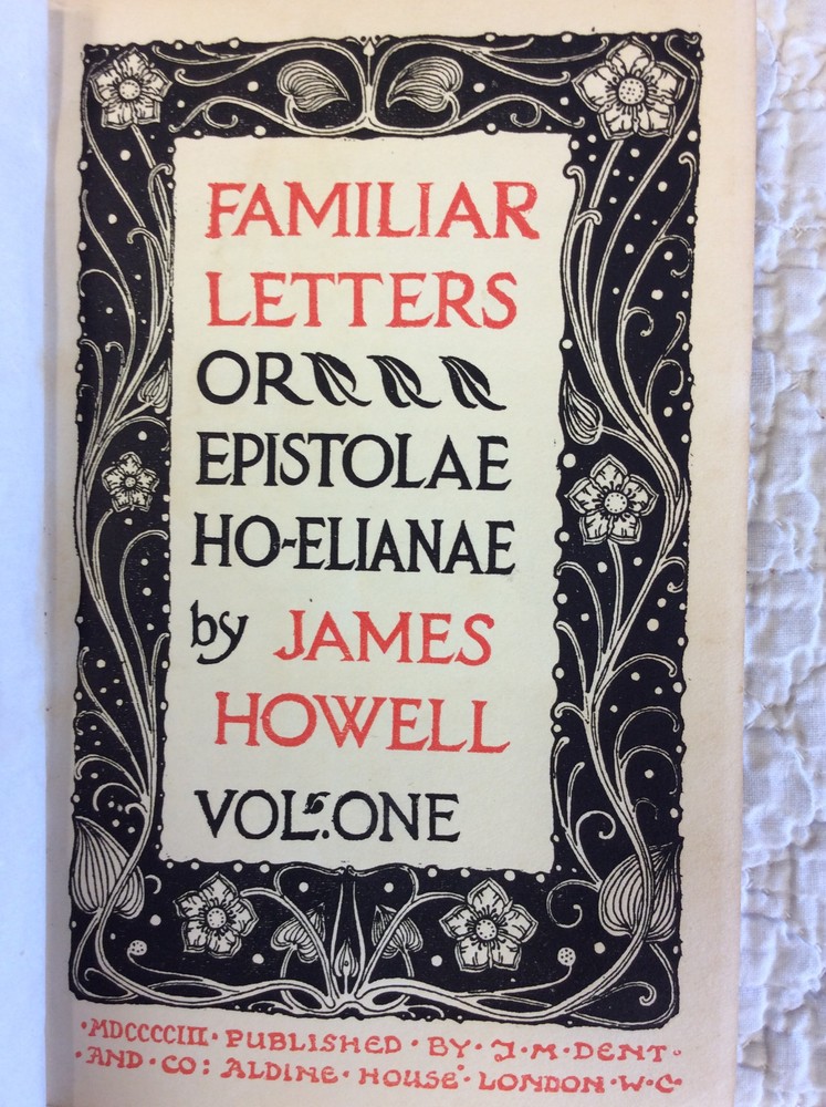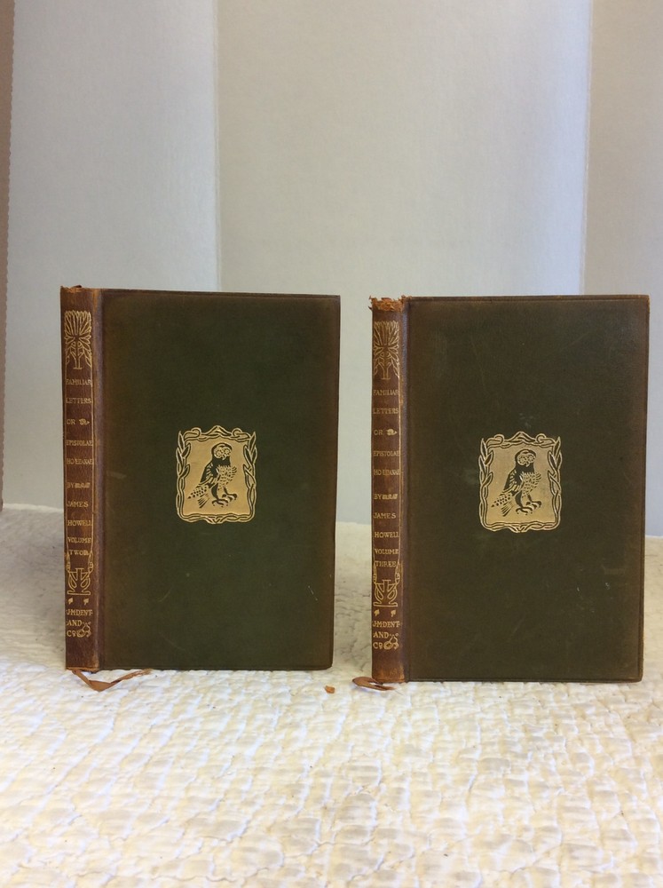 FAMILIAR LETTERS or Epistolae Ho-Elianae: Vols. I-III By James Howell Description: London: J.M. Dent 1903. Vol I: 349p. Vol II: 271p. Vol III: 174p Bound in full leather. Set of three volumes in good condition. Spines faded but interiors are clean and tight. Includes decorative title pages. Series of English letters from the 17th Century. This book is offered by Kubik Fine Books Ltd. Established in 1985, our store is in Dayton, Ohio, and specializes in rare/antique books of all types, with a special emphasis on history and theology. We are a member firm of the two most prestigious organizations in the rare books trade: the Antiquarian Booksellers Association of America (ABAA) and the International League of Antiquarian Booksellers (ILAB). As such, we are bound by their strict code of ethics and standards - in other words, you can trust us to be reputable, knowledgeable professionals. All items are guaranteed to be as described and can be returned for a full refund. Autograph material is guaranteed in perpetuity to be authentic. ORDER ADDITIONAL BOOKS AND SAVE! We will combine shipping on multi-book purchases. For shipments within the USA, shipping is $2.00 per book for each additional one purchased. Orders must be paid for at the same time. A FEW WORDS ON SHIPPING: Our shipping charges may be higher than other sellers. That's because we have a dedicated shipping employee and take care to make sure your orders are well-protected. Every item is wrapped in bubble-wrap; in addition, every order which sells for over $10 is shipped in a sturdy cardboard box with cushioning materials. Over 95% of our orders are shipped within one business day of when we receive payment. If you buy it tonight, it's en route tomorrow!
