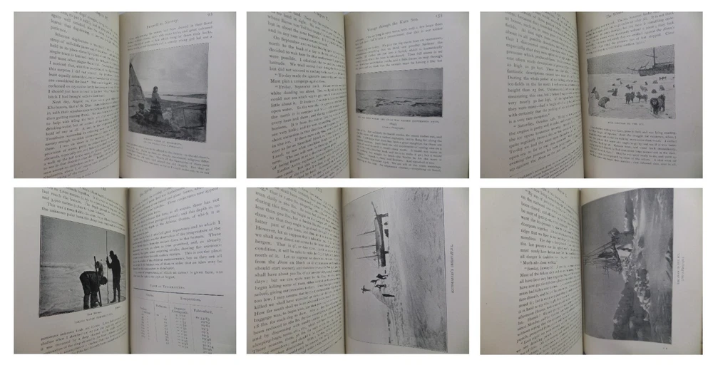 [NANSEN, FRIDTJOF (1861-1930)]. Farthest North: Being the Record of a Voyage of Exploration of the Ship Fram 1893-96 and of a Fifteen Months' Sleigh Journey by Dr. Nansen and Lieut. Johansen with an Appendix by Otto Sverdrup, Captain of the Fram . About One Hundred and Twenty Full Page and Numerous Text Illustrations and Coloured Plate in Facsimile from Dr. Nansen's own Sketches, Portrait and Maps. London: George Newnes, Ltd., 1898. Second edition. In two volumes (complete). Leather-bound. Hardcover. Large octavo (240 x 155 mm). Pp. [xv], 480; [viii], 456. English text. Handsomely r ebound in half-calf, the spines gilt with cloth sides, marbled page edges and endpapers. One colour plate from Nansen's own sketch, portrait frontispiece of Nansen, "around 120 full page black and white illustrations", plus many illustrations in the text. Fold out map in colour to the rear of vol.1. Condition: VERY GOOD. Bindings tight and secure with the hinges and joints intact. A little light marking to boards. Interiors very well-preserved. Without previous ownership markings. Notes: Nansen's own account of "a remarkable achievement in Polar exploration" (PMM). He designed a ship, the Fram, to "slip like an eel out of the embraces of the ice" and which he hoped would drift along the ice to the North Pole. His account of the difficult journey by sledge and the return of the Fram to Tromso became a worldwide bestseller. International tracked shipping - dispatched promptly and securely. Please view my other rare books.