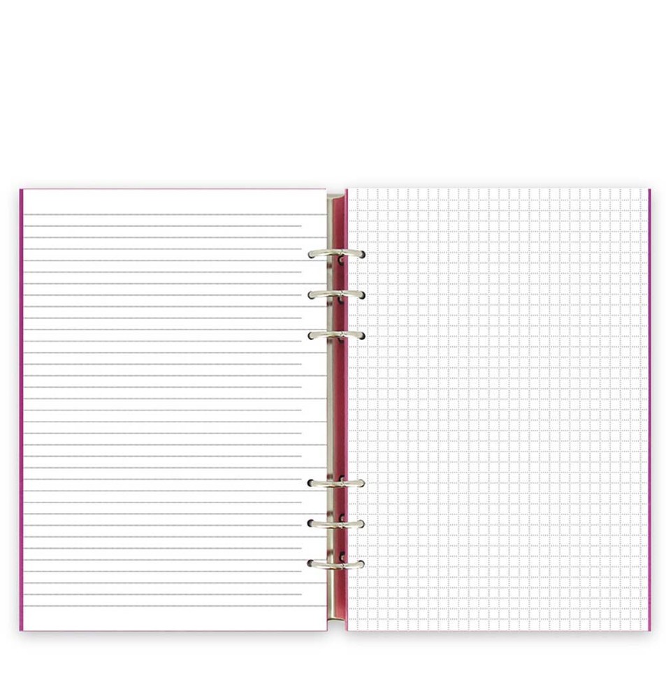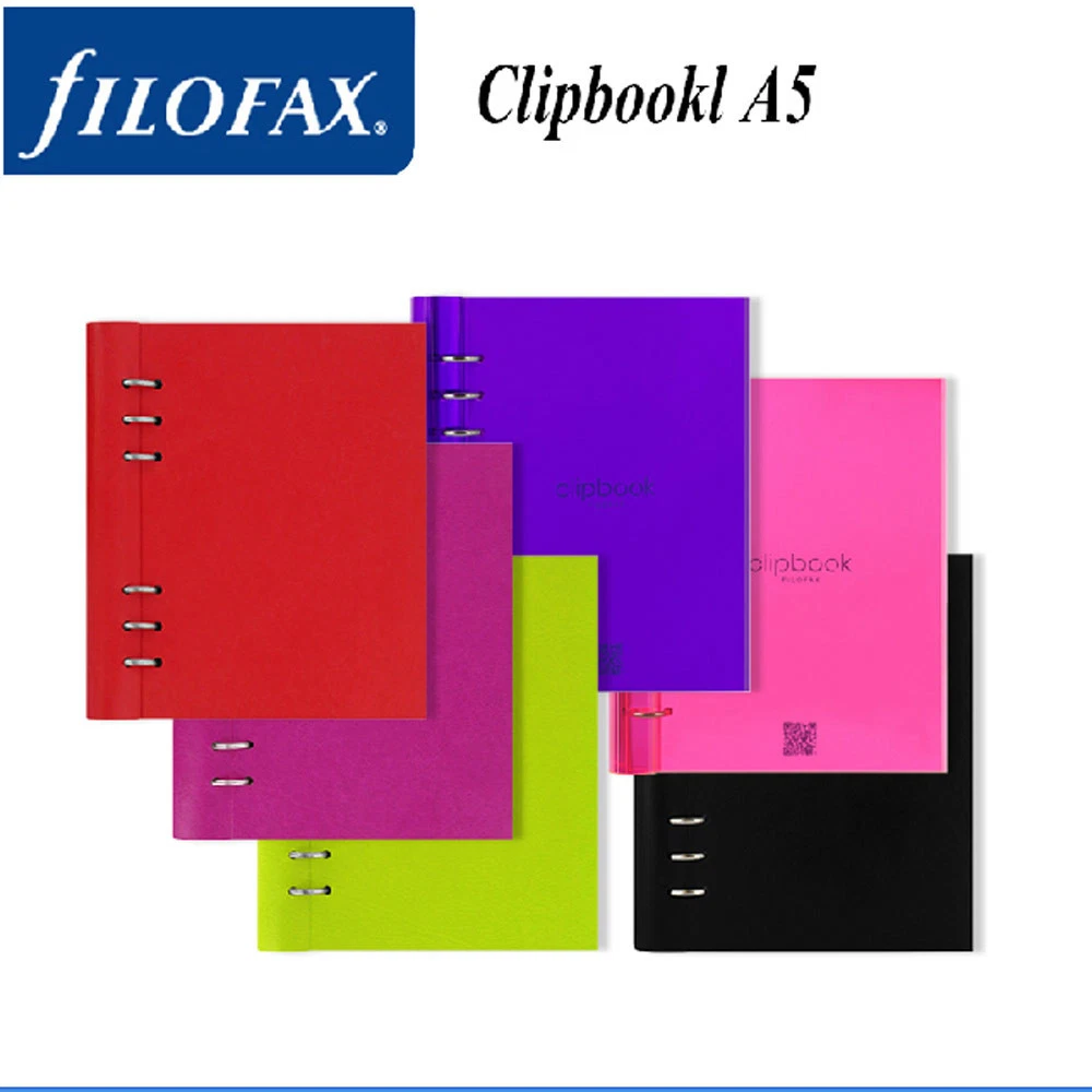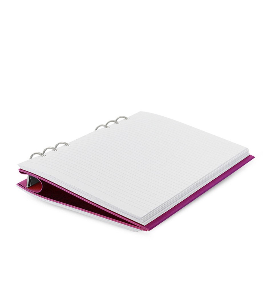 Filofax A5 Clipbook Leather-Look Refillable Notebook Diary Book Fuchsia 023617 With its clever construction and starter selection of various notepapers, undated diary and planner, Clipbook will revolutionise how you use a notebook. Adaptable and with flexible capacity, the cover\'s depth adjusts depending on how much you keep inside. It has a supple, tactile cover with textured leather-look and can be laid flat or folded back unlike bound notebooks. Open the rings by pulling the covers apart. Clipbook is compatible with all Filofax A5 refills, plus you can use a Filofax hole punch to add your own content. Clip your pen onto the spine and hang your keys or charms on the external rings. Get ready to add, remove and remix... Special Features : contains a variety of notepapers, undated diary/month planner/year planners and a gift tag Exterior Front Features : packaged in a clear plastic removable cover Contents: front sheet 15 ruled sheets 15 quadrille sheets 15 plain sheets 1 foldout double-sided undated year planner 6 foldout double-sided undated month planners 13 undated week on two page diary sheets 5 tasks/to do sheets Materials: Material Exterior: flexible leather-look pu with raw edge Material Interior: re-enforced flexible leather-look pu - allowing the cover to be pulled to open the ring mech Specs: Height: 212mm Width: 187mm Depth: 28mm (including rings) Pen Loop: pens can be clipped inside the top and base of the spine Ring Mech: 25mm Filofax Notebooks offer the same flexibility that has made the brand iconic - simplicity of a notebook but with the flexibility for personalisation. Clever features such as coloured indices, a ruler/page marker and moveable pages make these notebooks unique. inkfrog terape