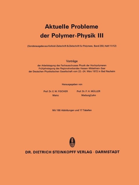About this Item The item is a book paperback or softback The Author Name is Fischer, E.W.,Mller, F.H. The Title is Aktuelle Probleme der Polymer-Physik III : Vortrge der Arbeitstagung des Fachausschusses Physik der Hochpolymeren Frhjahrstagung des Regionalverband Condition New Other Comments Pages Count - 212. Binding type - Perfect. Content Language - German Category - TECHNOLOGY & ENGINEERING / Materials Science / General TECHNOLOGY & ENGINEERING / Textiles & Polymers SCIENCE / Chemistry / Physical & Theoretical We Use Stock Images Because we have over 2 million items for sale we have to use stock images, this listing does not include the actual image of the item for sale. The purchase of this specific item is made with the understanding that the image shown in this listing is a stock image and not the actual item for sale. For example: some of our stock images include stickers, labels, price tags, hyper stickers, obi's, promotional messages, signatures and or writing which may not be available in the actual item. When possible we will add details of the items we are selling to help buyers know what is included in the item for sale. The details are provided automatically from our central master database and can sometimes be wrong. Books are released in many editions and variations, such as standard edition, re-issue, not for sale, promotional, special edition, limited edition, and many other editions and versions. The Book you receive could be any of these editions or variations. If you are looking for a specific edition or version please contact us to verify what we are selling. Gift Ideas This is a great Christmas gift idea. Hours of Service We have many warehouses, some of the warehouses process orders seven days a week, but the Administration Support Staff are located at a head office location, outside of the warehouses, and typically work only Monday to Friday. Location ID 555z iHaveit SKU ID 164286121