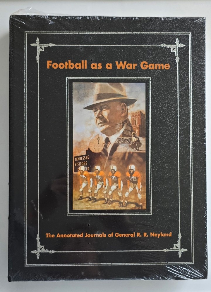Great condition with some tears in the wrapping. Football as a war game: The annotated journals of General R.R. Neyland Leather Bound – January 1, 2002 Football as a War Game is a compilation of the rarely before seen handwritten journals of General Neyland's entire career at the University of Tennessee. The book offers a very personal look into how he approached the game . It includes his coaching philosophies, practice techniques, play designs and football strategies. Included are over 250 historical photos, 200+ digitally reproduced journal pages, detailed explanations by Andy Kozar which give the reader better insight into the mindset of General Neyland, early football innovations, diagrams of plays and practice regiments, psychological strategies employed both in game preparation and on the field, strict rules and guidelines for all players as written by Neyland, and hunting and fishing stories from General Neyland. This book has been created in a manner to allow it to be passed on to future generations. The author, Dr. Andy Kozar, is considered to be one of the greatest fullbacks in UT history, All-SEC in 1952, and was an integral member of the 1951 National Championship team. Dr. Kozar spent six years researching and annotating the handwritten journals. As Dr. Kozar states, "this is the origin of Tennessee football in the General's own words, his thoughts on a day to day, game to game basis, as he wrote them on paper." Condition: New